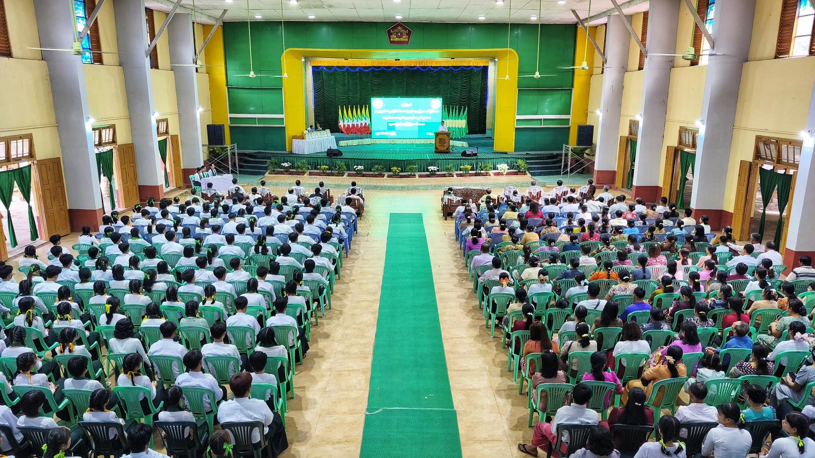 အခမ်းအနားကို ကျောင်းသား၊ ကျောင်းသူများက ပညာရည်ချွန် လူရည်မွန် တေးသီချင်းဖြင့် စတင်ဖွင့်လှစ်ခဲ့ပြီး ပြည်နယ်ဝန်ကြီးချုပ်က နိုင်ငံတော်အတွက် လိုအပ်နေသည့် အရည်အသွေးမြင့်မားသော အသိပညာရှင်၊အတတ်ပညာရှင်များ၊လူရည်ချွန်၊ လူရည်မွန်များ မွေးထုတ်ပေးနိုင်သည့် ဘက်စုံပညာရေးစနစ်ကို နိုင်ငံတော်က ထူထောင်ပေး ထားပြီးဖြစ်တာနှင့်အညီ ဤပညာရေးစနစ် သက်ဝင်ရှင်သန်ဖွံ့ဖြိုးတိုးတက်လာစေရန် မိဘ ပြည်သူများ၊ ဆရာ/ဆရာမများ၊ကျောင်းသား/သူများ၊ ဒေသဆိုင်ရာအုပ်ချုပ်ရေး အဖွဲ့အစည်းများ၊ စေတနာရှင်ပြည်သူများအားလုံး ဝိုင်းဝန်းပူးပေါင်းဆောင်ရွက်ပေး ကြရန် အမှာစကား ပြောကြားသည်။ ထို့နောက် မြို့နယ်ပညာရေးမှူး ဦးသန်းထွန်းဋ္ဌေးက ၂၀၂၅ ခုနှစ် တက္ကသိုလ်ဝင်တန်းစာမေးပွဲနှင့်ပတ်သက်၍ ရှင်းလင်းတင်ပြခဲ့သည်။