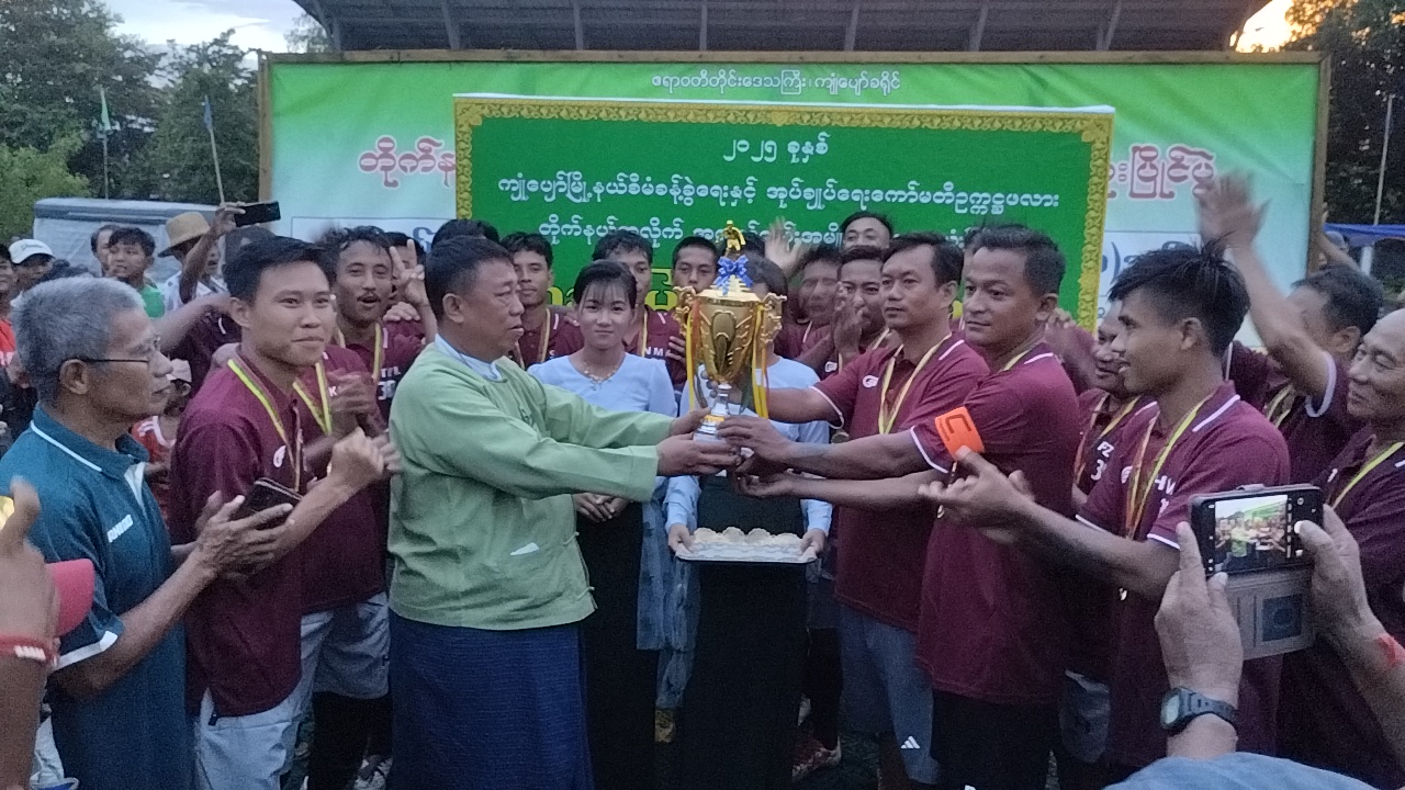 အရည်အချင်းပြည့်မီသော ထူးချွန်အားကစားသမားများ ပေါ်ထွန်းလာစေရန်အတွက်ကျင်းပခဲ့သည့် ၂၀၂၅ ခုနှစ် ကျုံပျော်မြို့နယ် စီမံခန့်ခွဲရေးနှင့် အုပ်ချုပ်ရေးကော်မတီဥက္ကဋ္ဌဖလားတိုက်နယ်အလိုက် အလွတ်တမ်းအမျိုးသားဘောလုံးပြိုင်ပွဲ ဗိုလ်လုပွဲနှင့် ဆုပေးပွဲကို ယမန်နေ့ ညနေ ၃ နာရီက ဧရာဝတီတိုင်းဒေသကြီး ကျုံပျော်ခရိုင် ကျုံပျော်မြို့နယ် အားကစားနှင့် ကာယပညာဦးစီးဌာန မြို့နယ်ပြည်သူ့အားကစားကွင်းအတွင်း၌ ကျင်းပ ပြုလုပ်သည်။