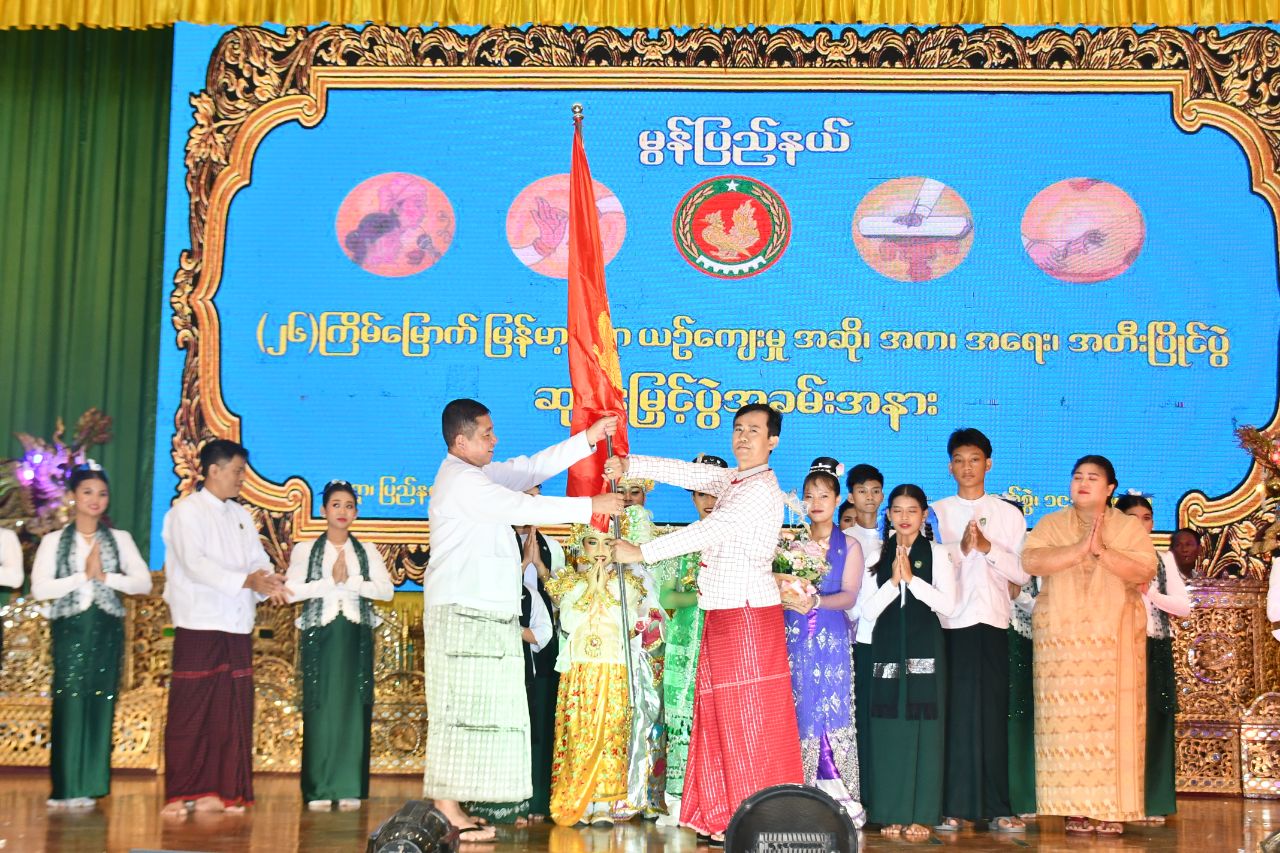 ထို့နောက် ပြည်နယ်ဝန်ကြီးချုပ်နှင့် တာဝန်ရှိသူများက ပြိုင်ပွဲဆုရ ဗဟိုအဆင့် မြန်မာ့ရိုးရာယဉ်ကျေးမှု အဆို၊ အက၊ အရေး၊ အတီး ပြိုင်ပွဲသို့ ဝင်ရောက်ယှဉ်ပြိုင်ကြမည့် ပြိုင်ပွဲဝင်များ၏ ဖျော်ဖြေတင်ဆက်မှုကို ကြည့်ရှုအားပေးခဲ့ကြပြီး ပြည်နယ်ဝန်ကြီးချုပ်က ပြိုင်ပွဲဝင်များနှင့် မွန်တိုင်းရင်းသားရိုးရာယိမ်း အကပြိုင်ပွဲဝင်အဖွဲ့များကို ဂုဏ်ပြုပန်းခြင်း ပေးအပ်ချီးမြှင့်သည်။ ဆက်လက်၍ မွန်ပြည်နယ် ရှေ့ဟောင်းသုတေသနနှင့် အမျိုးသားယဉ်ကျးမှု ပြတိုက်ဦးစီးဌာနမှ အဖွဲ့ခေါင်းဆောင်ထံသို့ အောင်နိုင်ရေးအလံ ပေးအပ်ခဲ့ကြောင်း သိရှိရသည်။