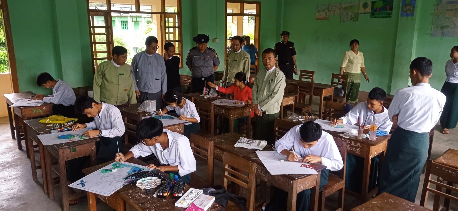 အဆိုပါ ကမ္ဘာ့အိုဇုန်းလွှာထိန်းသိမ်းရေးနေ့အထိမ်းအမှတ် ပိုစတာပြိုင်ပွဲများတွင် ကျောင်းသား/ ကျောင်းသူများ၏ ယှဉ်ပြိုင်နေမှုတို့ကို ခရိုင်စီမံခန့်ခွဲရေးနှင့်အုပ်ချုပ်ရေးကော်မတီဥက္ကဋ္ဌ ဦးကျော်စွာထွန်းနှင့် အဖွဲ့ဝင်များ၊ မြို့နယ်စီမံခန့်ခွဲရေးနှင့် အုပ်ချုပ်ရေးကော်မတီအဖွဲ့ဝင်များ၊ ခရိုင်/မြို့နယ်ပညာရေးမှူးများနှင့် တာဝန်ရှိသူများက လှည့်လည်ကြည့်ရှုအားပေးခဲ့ကြသည်။