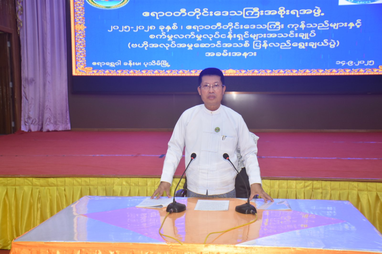 ဦးစွာ တိုင်းဒေသကြီးဝန်ကြီးချုပ်က“ ဧရာဝတီတိုင်းဒေသကြီးကုန်သည်များနှင့် စက်မှုလက်မှုလုပ်ငန်းရှင်များအသင်းချုပ် (ARCCI) သည် တိုင်းဒေသကြီးစီးပွားရေးလုပ်ငန်းများ ဖွံ့ဖြိုးတိုးတက်ရေးအတွက် မရှိမဖြစ်လိုအပ်သည့် အဖွဲ့အစည်းတစ်ခုဖြစ်ပါကြောင်း၊ လက်ရှိ ဧရာဝတီ တိုင်းဒေသကြီးကုန်သည်များနှင့် စက်မှုလက်မှုလုပ်ငန်းရှင်များအသင်းချုပ် (ARCCI) တွင် အသင်းပေါင်း ၃၉ သင်း ဖြင့်ဖွဲ့စည်းဆောင်ရွက်ထားရှိပြီး ထုတ်လုပ်မှုဆိုင်ရာအသင်း ၂၂သင်း၊ ဝန်ဆောင်မှုဆိုင်ရာအသင်း ၁၇ သင်းရှိပါကြောင်း၊ ယနေ့တွင် ဗဟိုအလုပ်အမှုဆောင်အသစ် ပြန်လည်ရွေးချယ်၍ ညီနောင်အသင်းများနှင့်အတူတွဲဖက်ပြီး တိုင်းဒေသကြီး၏ စီးပွားရေးလုပ်ငန်းများကို ဦးစီးဦးဆောင်ပြုဆောင်ရွက်မည့် အသင်းလည်းဖြစ်ပါကြောင်း၊ ပြည်တွင်းပြည်ပ ဈေးကွက်များ ဝင်ရောက်နိုင်ရန် (ARCCI) ကဲ့သို့ အသင်းချုပ်များတွင် ပါဝင်ဆောင်ရွက်နေကြရမည်ဖြစ်ပါကြောင်း၊ တိုင်းဒေသကြီးအစိုးရအဖွဲ့အနေဖြင့်လည်း (ARCCI) အသင်းနှင့်အတူ ပူးပေါင်း ဆောင်ရွက်ပေးလျက်ရှိပါကြောင်း၊ မိမိတို့တိုင်းဒေသကြီးသည် စိုက်ပျိုးမွေးမြူရေးကိုအခြေခံသည့် တိုင်းဒေသကြီးဖြစ်ပြီး ပေါ်ဆန်းမွှေးဆန်အပါအဝင် စိုက်ပျိုးမွေးမြူရေးထုတ်ကုန်များ ပြည်ပတင်ပို့ နိုင်ရန် Export Zone များတည်ထောင်ဆောင်ရွက်သွားရန်လိုပါကြောင်း၊ MSME လုပ်ငန်းများအနေဖြင့် စားသောက်ကုန်လုပ်ငန်းများသည် ဖွံ့ဖြိုးလျက်ရှိပါကြောင်းနှင့် စိုက်ပျိုးမွေးမြူရေးလုပ်ငန်းအနေဖြင့် ပို့ကုန်နှစ်ဆတိုးမြှင့်နိုင်ရေး ဆောင်ရွက်လျက်ရှိပါကြောင်း၊ တိုင်းဒေသကြီးအတွင်း စားသုံးဆီဖူလုံရေးအတွက်လည်း ကြိုးပမ်းဆောင်ရွက်လျက်ရှိရာ မြေပဲ၊ နှမ်း၊ နေကြာ စသည့် ဆီထွက်သီးနှံများ စိုက်ပျိုးလျက်ရှိပြီး ပဲပုတ်၊ ပဲကြီး ရောနှော၍ ဧက (၁) သိန်းစိုက်ပျိုးရန် ဆောင်ရွက်လျက်ရှိပါကြောင်း၊ တိုင်းဒေသကြီး၏ စီးပွားရေးလုပ်ငန်းများကို အဓိကမောင်းနှင်မည့်အသင်းကြီးအနေဖြင့် အမှုဆောင်အသစ်များကို ရွေးချယ်တင်မြှောက်၍ လုပ်ငန်းများကိုခိုင်ခိုင်မာမာ ဆောင်ရွက်ရန်လိုပါကြောင်း၊ ဧရာဝတီတိုင်းဒေသကြီးကုန်သည်များနှင့် စက်မှုလက်မှုလုပ်ငန်း ရှင်များအသင်းချုပ် (ARCCI) အနေဖြင့် ဧရာဝတီတိုင်းဒေသကြီးဖွံ့ဖြိုး တိုးတက်ရေးအတွက် တက်ညီလက်ညီပူးပေါင်းဆောင်ရွက် ပေးကြစေလိုကြောင်း” အမှာစကား ပြောကြားသည်။