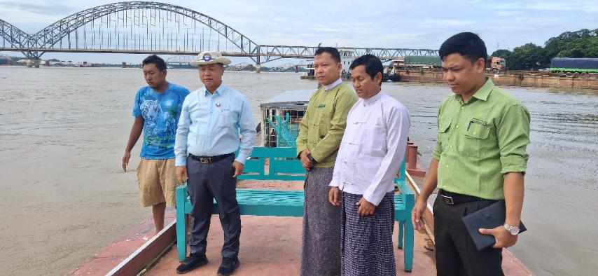 စစ်ကိုင်းတိုင်းဒေသကြီးအစိုးရအဖွဲ့ လူမှုရေးရာဝန်ကြီး ဦးညွန့်ဝင်းအောင်၊ မြို့နယ်စီမံခန့်ခွဲရေးနှင့် အုပ်ချုပ်ရေးကော်မတီအဖွဲ့ဝင် ဦးခင်ဇော်နှင့် တာဝန်ရှိသူများသည် ယနေ့နံနက်ပိုင်းတွင် စစ်ကိုင်း-မန္တလေး ဇက်ကူးတို့ဆိပ်တွင် ကူးသန်းသွားလားလျက်ရှိသော ကုန်တင်ယာဉ်ကြီးများ၊ ဆီသယ်ယာဉ်များ အဆင်ပြေစွာ ဖြတ်သန်သွားလာနိုင်ရေး သယ်ယူပို့ဆောင်ပေးနေမှုများ၊ အသစ်ပြောင်းလဲပြင်ဆင်ထားသည့်ဈေးနှုန်းများအတိုင်း ကောက်ခံမှုရှိ/မရှိနှင့် ဇက်ကူးတို့များကမ်းကပ်သည့်နေရာ စစ်ကိုင်းဘက်ကမ်းနှင့် မန္တလေးဘက်ကမ်းတို့အား လိုက်လံကြည့်ရှုစစ်ဆေးပြီး တာဝန်ယူဆောင်ရွက်နေသည့်အဖွဲ့များနှင့်တွေ့ဆုံ၍ လိုအပ်သည်များကို ပေါင်းစပ်ဖြည့်ဆည်းဆောင်ရွက်ပေးခဲ့သည်။