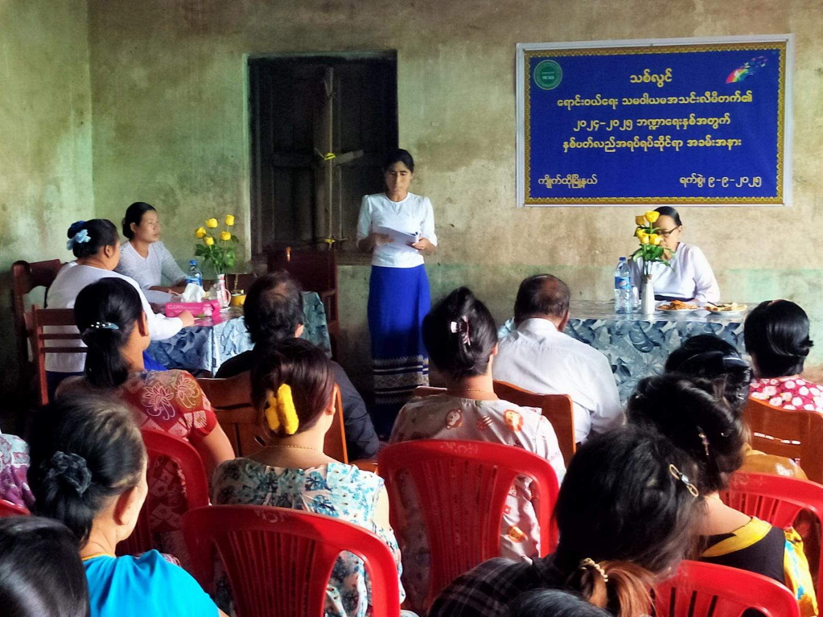 ထို့နောက် သစ်လွင်ရောင်းဝယ်ရေးသမဝါယမအသင်း၏ အမှုဆောင်အဖွဲ့အစီရင်ခံစာ၊ အရှုံးအမြတ်ဘဏ္ဍာရေးရှင်းတမ်း၊ အမြတ်ခွဲဝေစာရင်း၊ အသင်းသားစာရင်းစစ်အဖွဲ့ အစီရင်ခံစာများအား မြို့နယ်သမဝါယမဦးစီးဌာနမှ ဒေါ်အိအိလွင်ကဖတ်ကြားပြီး သဘာပတိ ဒေါ်ခင်ဌေးက အသင်းသားများထံမှ အတည်ပြုချက်ရယူ၍ နိဂုံးချုပ်စကားပြောကြားပြီး အခမ်းအနားကို ရုပ်သိမ်းခဲ့ကြောင်း သိရသည်။