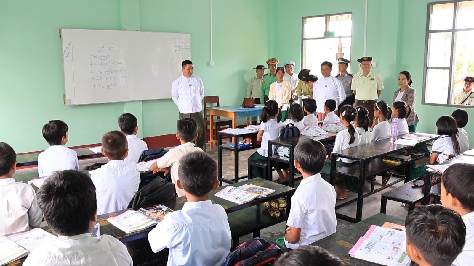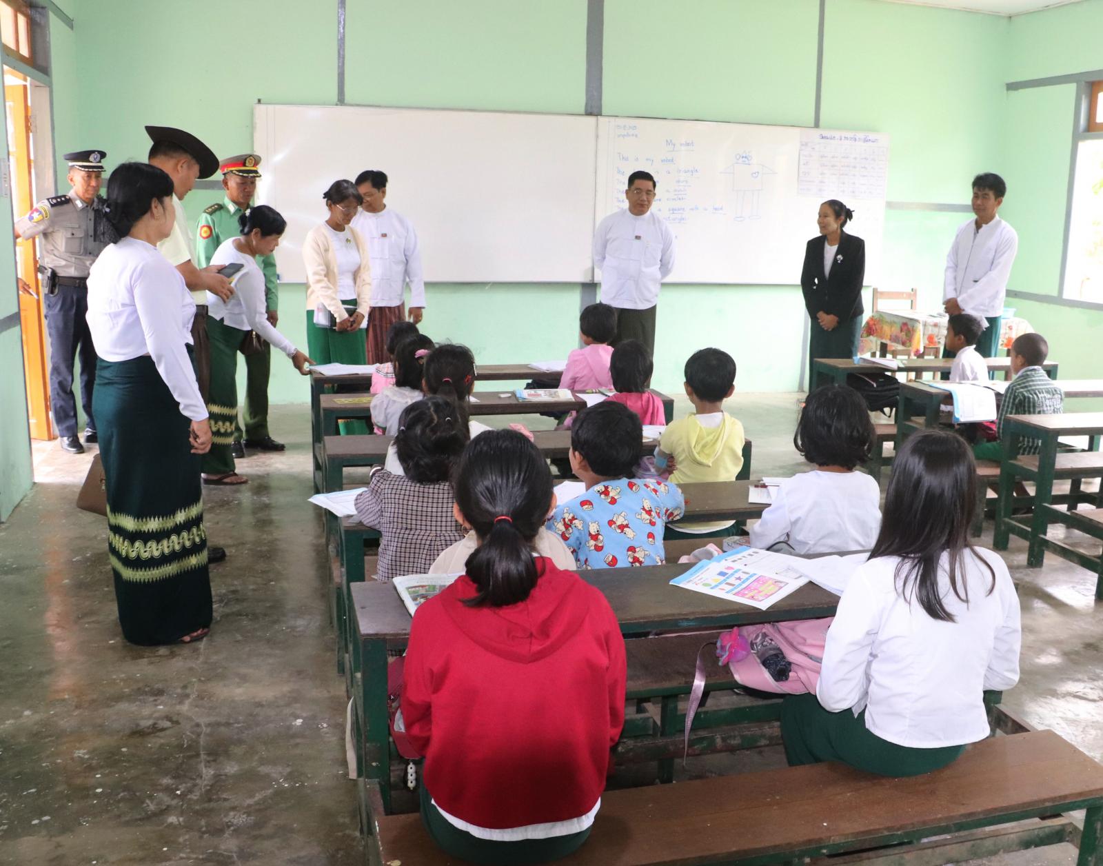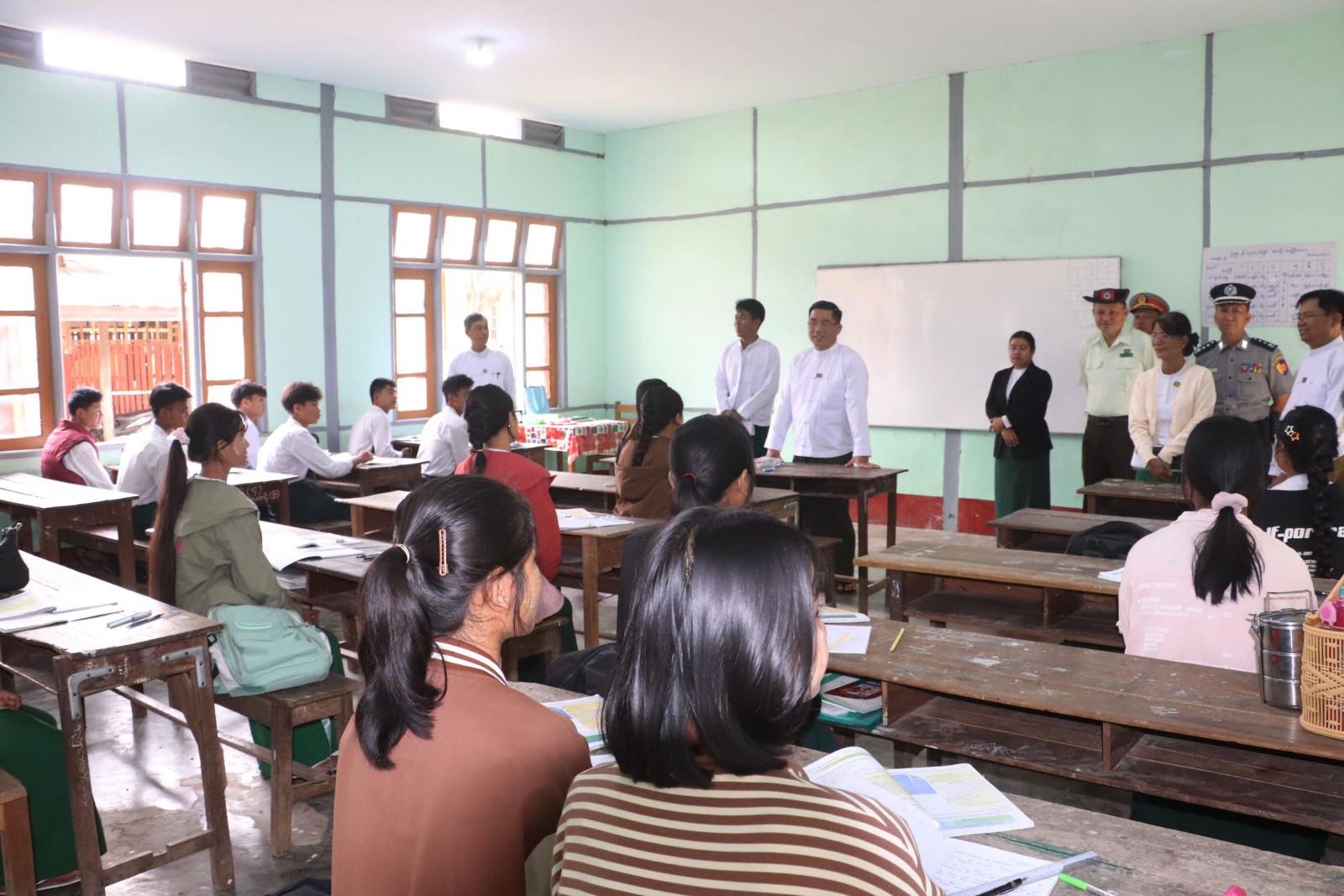 ထို့နောက် ပြည်နယ်ဝန်ကြီးချုပ်နှင့် တာဝန်ရှိသူများသည် မိုင်းလုံးရပ်ကွက် အမှတ် (၄) အခြေခံပညာအထက်တန်းကျောင်းသို့ ရောက်ရှိပြီး ဆရာ၊ ဆရာမများ၊ ကျောင်းသား၊ ကျောင်းသူများ၊ ကျောင်းသားမိဘများနှင့် တွေ့ဆုံ၍ မိမိတို့၏နေရာဒေသတွင် ပြန်လည်နေထိုင်နိုင်ရန်နှင့် မိမိတို့၏ သားသမီးများ ပညာသင်ကြားနိုင်ရန် ပြည်နယ်အစိုးရအဖွဲ့အနေဖြင့် အဘက်ဘက်မှ ဖြည့်ဆည်းပေးလျက်ရှိကြောင်း၊ ဆရာ၊ ဆရာမများ၊ မိဘများအနေဖြင့် ထူးချွန်ကျောင်းသားများဖြစ်အောင် ပြုစုပျိုးထောင်ပြီး ကျောင်းနေရွယ်ကလေးတိုင်းရာနှုန်းပြည့် ကျောင်းတက်ရောက်စေရေးနှင့် စဉ်ဆက်မပြတ်အတန်းစဉ်ကူးပြောင်းမှု ရှိစေရေးပူးပေါင်းဆောင်ရွက်ကြစေလိုကြောင်း ပြောကြားခဲ့ပြီး တာဝန်ရှိသူများက ကျောင်းပြန်လည်ဖွင့်လှစ်နိုင်မှု၊ ပညာသင်ကြားမှုများနှင့် စပ်လျဉ်း၍ ရှင်းလင်းတင်ပြကြသည်။ ထို့နောက် ပြည်နယ်ဝန်ကြီးချုပ်နှင့် တာဝန်ရှိသူများသည် ဆရာ၊ ဆရာမများနှင့် ကျောင်းသား၊ ကျောင်းသူများ စိတ်အေးချမ်းသာစွာ ပညာသင်ကြားနေမှုအား လှည့်လည်ကြည့်ရှုအားပေးခဲ့သည်။ ဆက်လက်၍ ပြည်နယ်ဝန်ကြီးချုပ်နှင့် တာဝန်ရှိသူများသည် ထေးသမရပ်ကွက်၊ ထေးသမ(လေ့ကျင့်ရေးအလယ်တန်းကျောင်း)သို့ ရောက်ရှိကာ ကျောင်းသား၊ ကျောင်းသူများ ပျော်ရွှင်အေးချမ်းစွာ ပညာသင်ကြားနေမှုများအား လှည့်လည်ကြည့်ရှုအားပေးပြီး ကျောင်းအတွင်း/အပြင် သန့်ရှင်းသာယာရေးမပြတ်ဆောင်ရွက်ရန်နှင့် သင်ထောက်ကူပစ္စည်းများ ပြည့်စုံအောင်စီမံပေးရန် တာဝန်ရှိသူများအား မှာကြားခဲ့သည်။