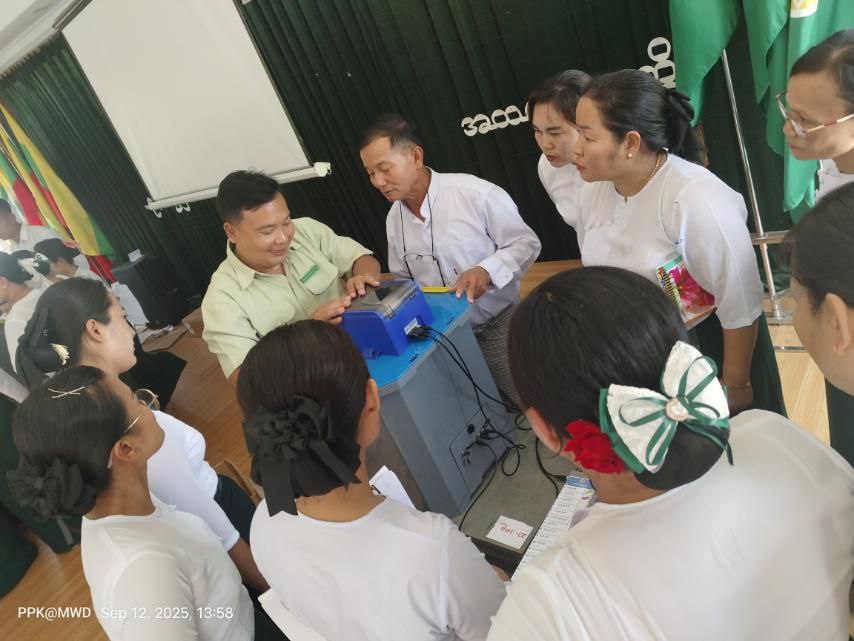 ကရင်ပြည်နယ်၊ မြဝတီခရိုင်/မြိုနယ်ရွေးကောက်ပွဲကော်မရှင်အဖွဲ့ခွဲမှ မြန်မာအီလက်ထရောနစ် မဲပေးစက်(MEVE)ဆိုင်ရာ အသိပညာပေးဟောပြောပွဲ၊ စမ်းသပ်မဲပေးခြင်းနှင့် မဲပေးစက်ကိုင်တွယ် အသုံးပြုနည်း ဆင့်ပွားသင်တန်းဖွင့်ပွဲအခမ်းအနားကို စက်တင်ဘာ ၁၂ ရက်က မြဝတီမြို့နယ် ပူလွဲပူကျေးရွာအုပ်စု(ရွှေကုက္ကိုလ်) အခြေခံပညာအထက်တန်းကျောင်း ခန်းမဆောင်၌ကျင်းပသည်။