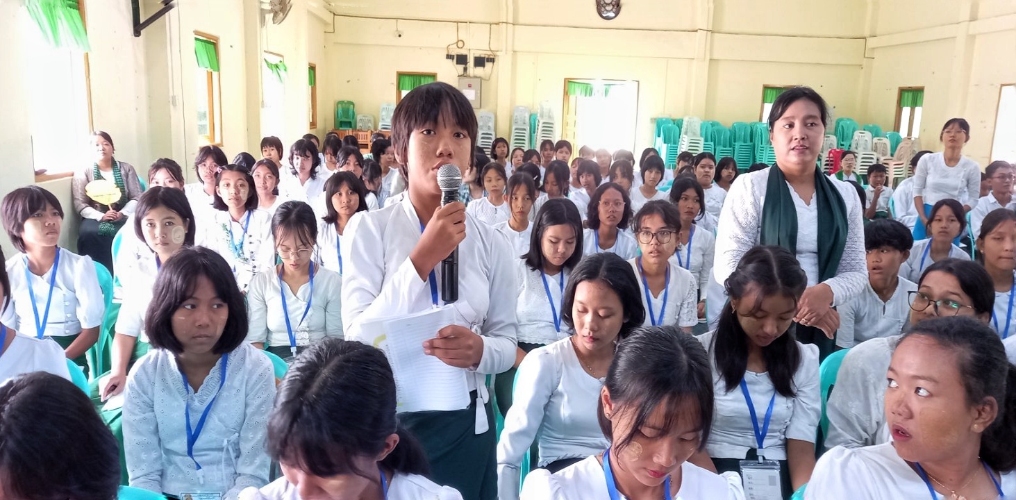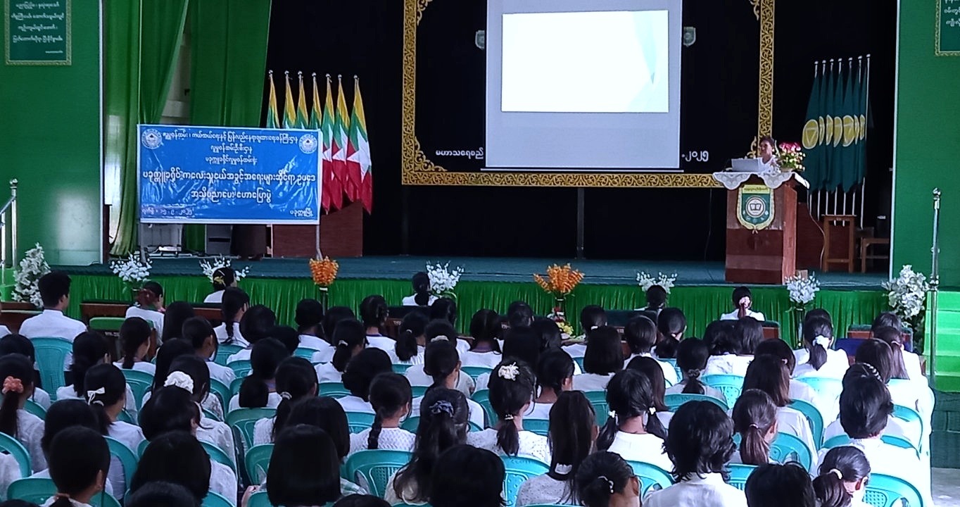 ပညာရေးဝန်ကြီးဌာန၊ ဆရာအတတ်ပညာဦးစီးဌာန၊ ပခုက္ကူပညာရေးဒီဂရီကောလိပ်၌ ယနေ့ နံနက် ၈ နာရီအချိန်က ကလေးသူငယ် အခွင့်အရေးများဆိုင်ရာ အသိပညာပေး ဟောပြောပွဲ ကျင်းပပြုလုပ်သည်။