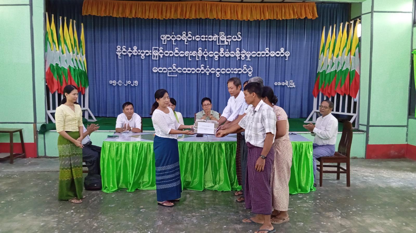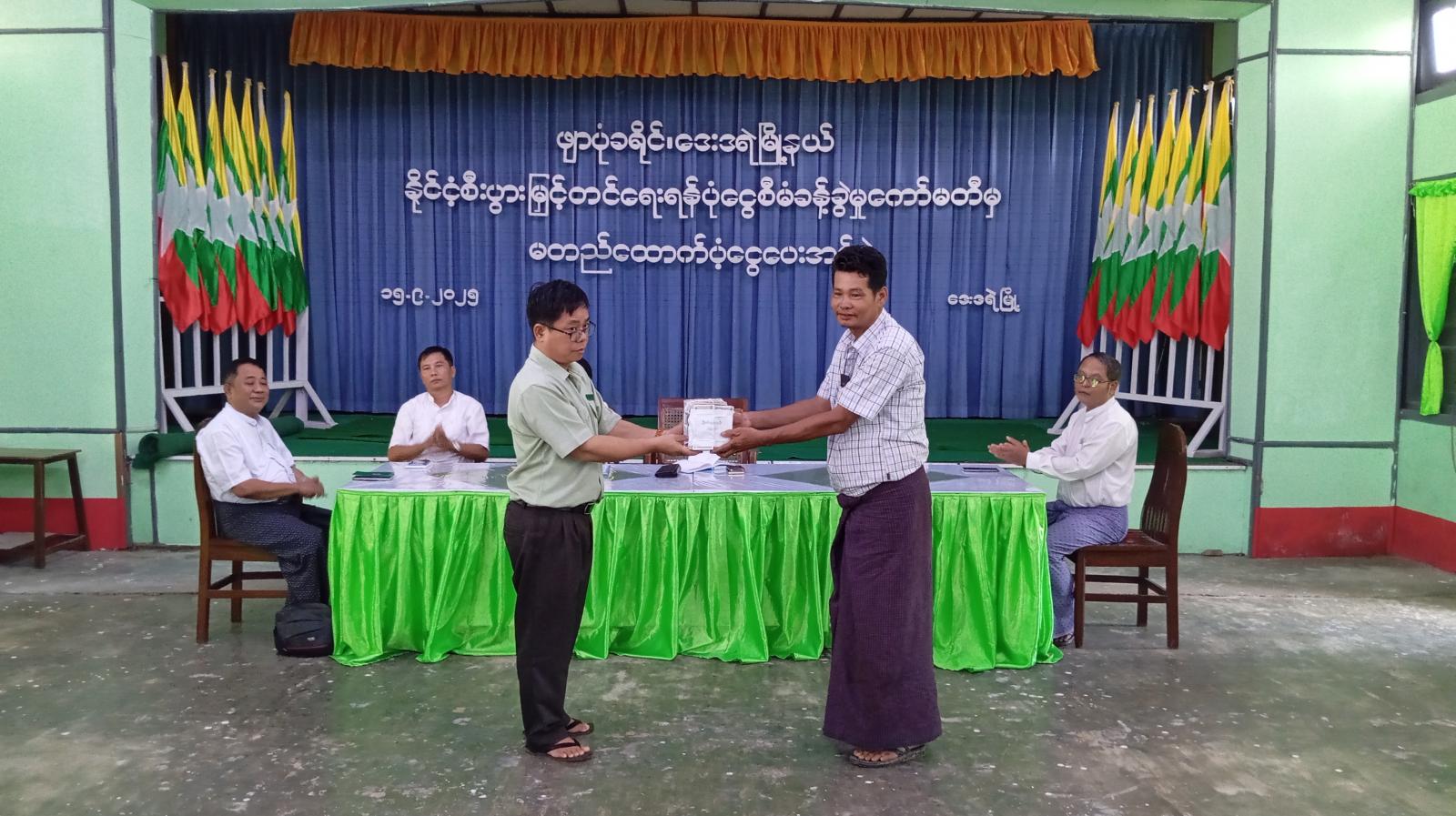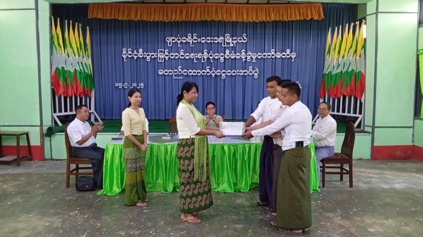 ဆက်လက်၍ နိုင်ငံ့စီပွားမြှင့်တင်ရေးစီမံကိန်း ရန်ပုံငွေစီမံခန့်ခွဲမှုကော်မတီဥက္ကဋ္ဌ ဦးမြသိန်းမောင်နှင့် အဖွဲ့ဝင်များက မြို့နယ်အတွင်းရှိ စိုက်ပျိုးရေးကဏ္ဍအတွက် လုပ်ငန်းရှင်အစုအဖွဲ့ (၄)စုအား ငွေကျပ် (၁၀၈၀)သိန်း၊ မွေးမြူရေးကဏ္ဍအတွက် လုပ်ငန်းရှင် အစုအဖွဲ့ (၄)စုအား ငွေကျပ် (၈၂၀)သိန်းနှင့် ကုန်ထုတ်လုပ်မှုကဏ္ဍဖွံ့ဖြိုးတိုးတက်ရေးအတွက် လုပ်ငန်းရှင် အစုအဖွဲ့ (၂)စုအား ငွေကျပ် (၆၀၀)သိန်း၊ စုစုပေါင်း ငွေကျပ် (၂၅၀၀)သိန်းအား လွှဲပြောင်းပေးအပ်ခဲ့ကြောင်း သိရသည်။