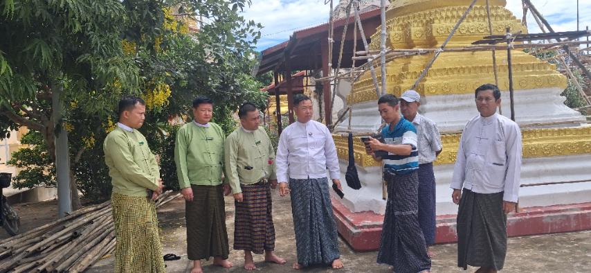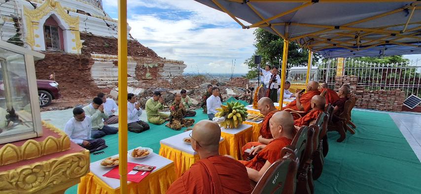 စစ်ကိုင်းတိုင်းဒေသကြီးအစိုးရအဖွဲ့ လူမှုရေးရာဝန်ကြီးဝန်ကြီး ဦးညွန့်ဝင်းအောင်၊ မြို့နယ်စီမံခန့်ခွဲရေးနှင့် အုပ်ချုပ်ရေးကော်မတီဥက္ကဋ္ဌ ဦးကျော်စွာမောင်စိုးနှင့် တာဝန်ရှိသူများသည် ယနေ့နံနက်ပိုင်းတွင် မန္တလေးငလျင်ကြီးလှုပ်ခတ်ခဲ့မှုကြောင့် ပြိုကျပျက်စီးခဲ့သည့် စစ်ကိုင်းမြို့ရန်အောင်မြင်ရှင်ပင်နံကိုင်းဘုရား ပြန်လည်ပြုပြင်ရန်အတွက်ပန္နက်တော်တင် မင်္ဂလာအခမ်းအနားသို့ တက်ရောက်၍ ပန္နက်တော်တင်ခြင်းနှင့် ငလျင်ဒဏ်ကြောင့်ထိခိုက်ပျက်စီးခဲ့သည့် သစ္စာစေတီပြန်လည်ပြုပြင်မွမ်းမံနေမှုအား ကြည့်ရှုစစ်ဆေးပြီး လိုအပ်သည်များကို ပေါင်းစပ်ညှိနှိုင်းဖြည့်ဆည်း ဆောင်ရွက်ပေးခဲ့သည်။