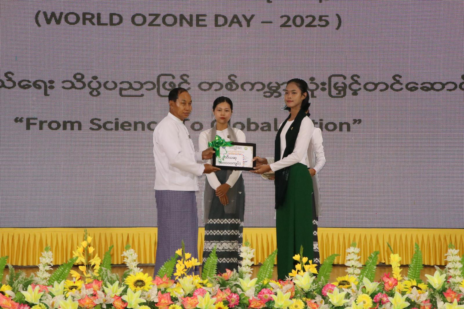 ထို့နောက် တိုင်းဒေသကြီး ပတ်ဝန်းကျင်ထိန်းသိမ်းရေးဦးစီးဌာနမှ ဝန်ထမ်းများမှ ၂၀၂၅ ခုနှစ်၊ ကမ္ဘာ့အိုဇုန်းလွှာထိန်းသိမ်းရေးနေ့အား ဂုဏ်ပြုကြိုဆိုသောအားဖြင့် “သဘာဝပတ်ဝန်းကျင် ရေရှည်တည်တံ့အောင် ထိန်းသိမ်းစောင့်ရှောက်ပါမည်” တေးသီချင်းဖြင့် သီဆိုဖျော်ဖြေခဲ့ကြပြီး တိုင်းဒေသကြီး သယံဇာတရေးရာဝန်ကြီးက တေးသီချင်းသီဆို သွားကြသည့် ဝန်ထမ်းများအား ဂုဏ်ပြုချီးမြှင့်ငွေများ ပေးအပ်သည်။