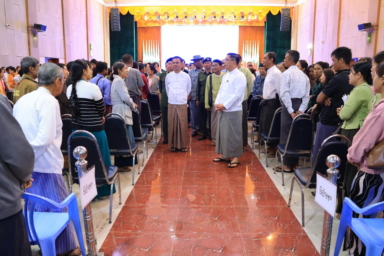 ထို့နောက် ပြည်နယ်ဝန်ကြီးချုပ်က တက်ရောက်လာသည့် ပြည်သူများအား ရင်းရင်းနှီးနှီး နှုတ်ဆက်အားပေးစကား ပြောကြားခဲ့ပြီးပြည်သူများက အခက်အခဲများ၊ ကူညီဖြည့်ဆည်းပေးရန် များအား တင်ပြကြရာဆောင်ရွက်ပေးမည့် အခြေအနေများအား ပြန်လည်ပြောကြားခဲ့ပြီး သက်ဆိုင်ရာဌာနတာဝန်ရှိသူများနှင့် လိုအပ်သည်များပေါင်းစပ်ညှိနှိုင်းပေးခဲ့သည်။