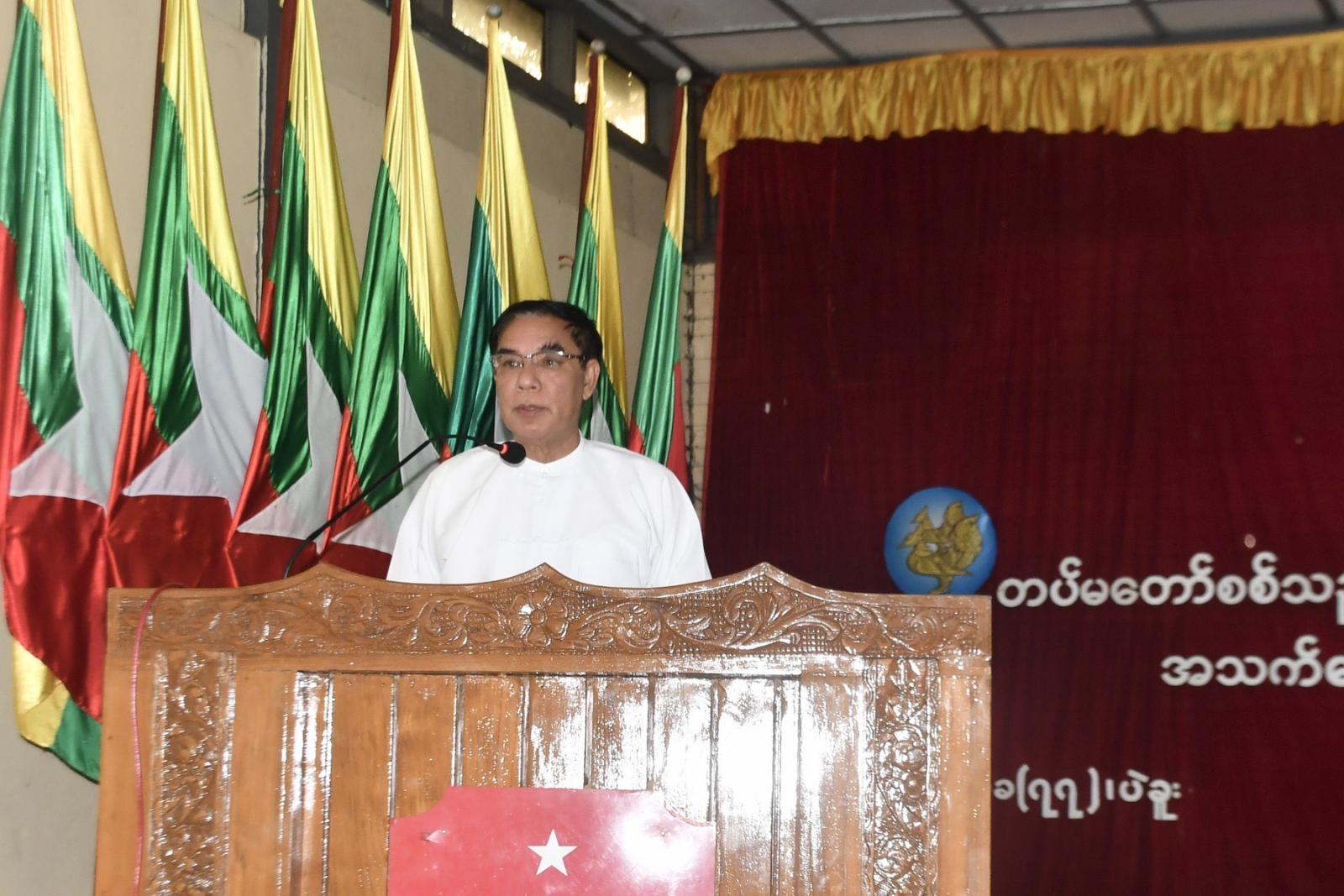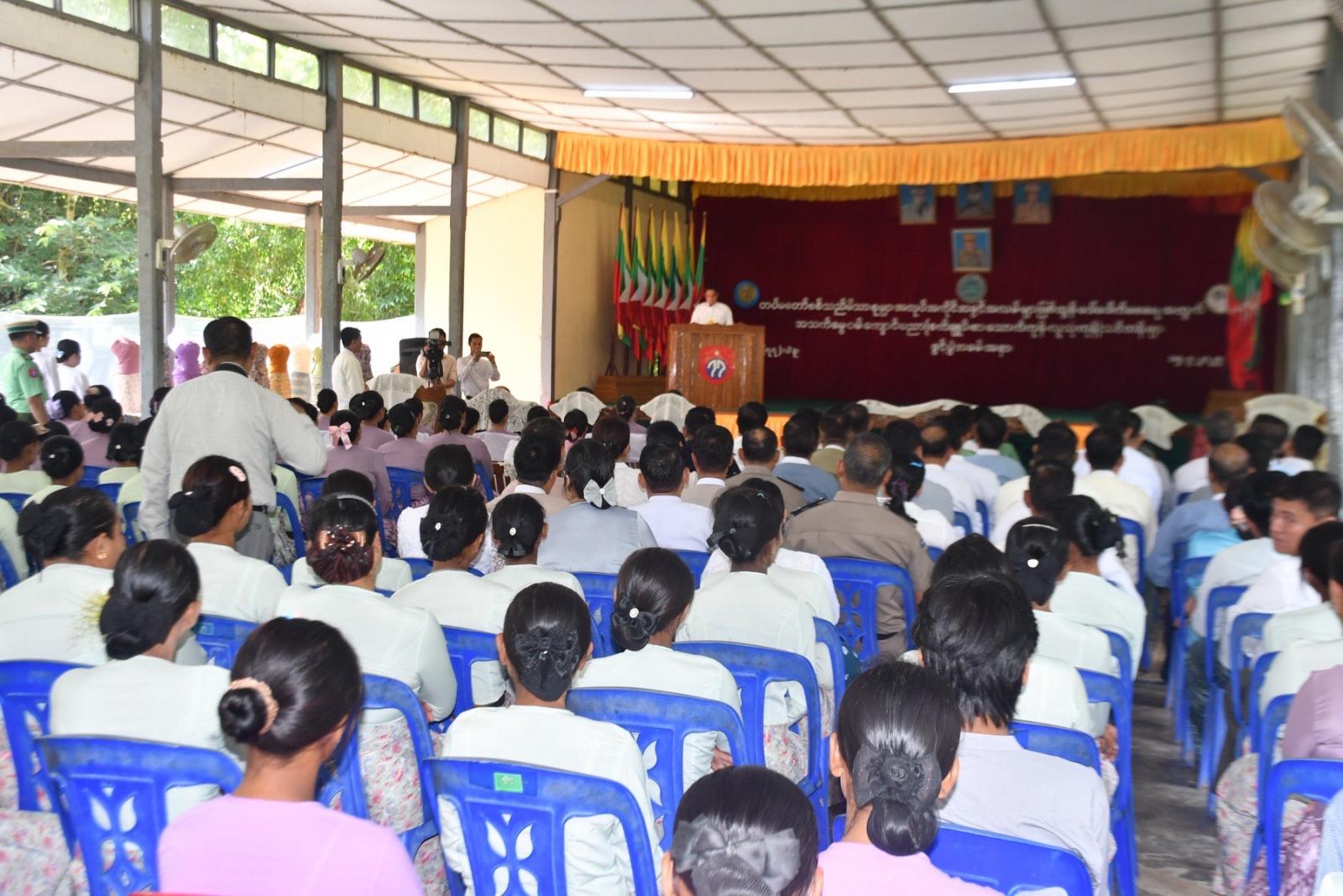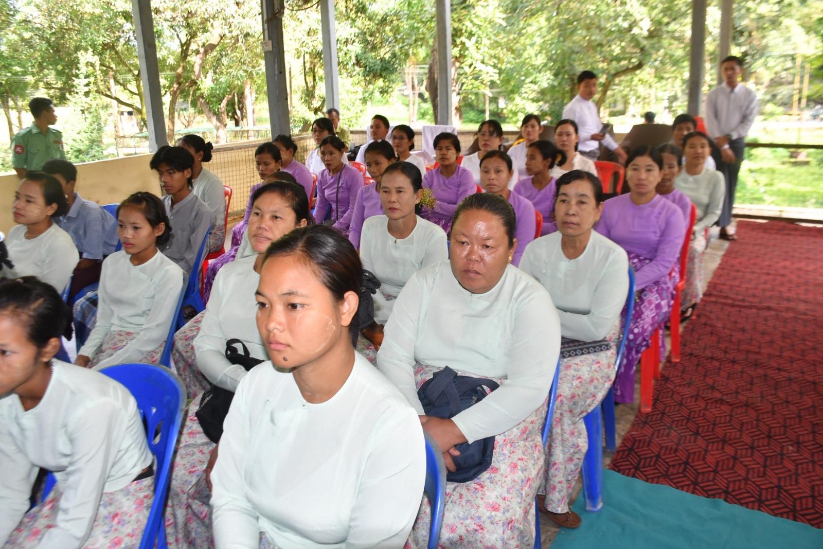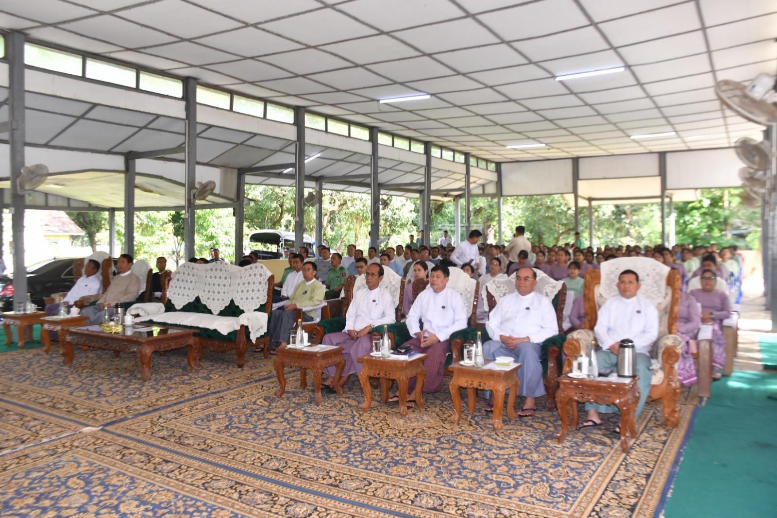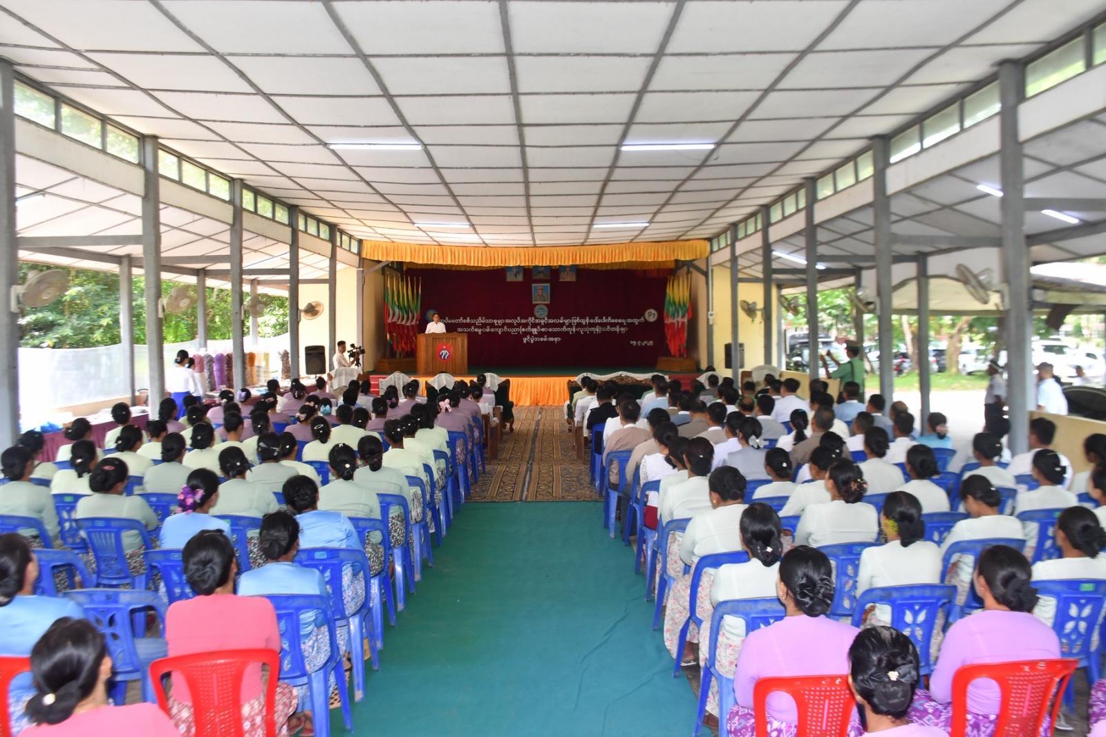 ရှေးဦးစွာ ပဲခူးတိုင်းဒေသကြီးအစိုးရအဖွဲ့၊ ဝန်ကြီးချုပ် ဦးမျိုးဆွေဝင်းက ပဲခူးတိုင်းဒေသကြီးအတွင်း ကျေးလက်ဒေသဖွံ့ဖြိုးတိုးတက်ရေး၊ လူမှုစီးပွားဘဝမြင့်မားတိုးတက်ရေး၊ မြို့ပြနှင့်ကျေးလက်နေပြည်သူများ အလုပ်အကိုင်အခွင့်အလမ်းများ ဖြစ်ထွန်းပေါ်ပေါက်လာစေရေး၊ တစ်ဘက်တစ်လမ်းမှ မိသားစုဝင်ငွေတိုးပွားရရှိရေး၊ တစ်ပိုင်တစ်ပိုင် အသေးစားကုန်ထုတ်လုပ်ငန်းများ ထူထောင်လုပ်ကိုင် ဆောင်ရွက်လာနိုင်စေနှင့် လူ့စွမ်းအားအရင်းအမြစ်များ ဖွံ့ဖြိုးတိုးတက်လာစေရေးတို့အတွက် အသက်မွေးဝမ်းကျောင်း အထောက်အကူပြုပညာရပ်သင်တန်းများကို လအလိုက် နယ်ပယ်ဒေသအစုံတွင် ဖွင့်လှစ်ပေးလျက်ရှိကြောင်း၊ ယခုဖွင့်လှစ်သည့်သင်တန်းများမှ သင်ကြားပေးလိုက်တဲ့ ပညာရပ်များသည် သင်တန်းပြီးဆုံးသည်နှင့် အလွယ်တစ်ကူလုပ်ငန်းထူထောင်နိုင်သော ပညာရပ်များဖြစ်သည့်အပြင် သင်တန်း၌ထူးချွန်သူ သင်တန်းသူများကိုရွေးချယ်၍ ကိုယ်ပိုင်လုပ်ငန်းစတင်ထူထောင်နိုင်ရေး လုပ်ငန်းအလိုက် စက်ပစ္စည်းများ အခမဲ့ချီးမြှင့်ပေးအပ်သွားမှာဖြစ်ကြောင်း၊ သင်တန်းတက်ရောက်လာကြသည့် စစ်သည်မိသားစုများအနေဖြင့် သင်တန်းမှရရှိလာမည့် နည်းပညာရပ်များကို ပြန်လည်အသုံးပြုပြီး ဝင်ငွေတိုးတက်ရရှိရေးနှင့် အောင်မြင်သည့် အသေးစားကုန်ထုတ်လုပ်ငန်းရှင်များဖြစ်အောင် ကြိုးစားသွားကြစေလိုကြောင်း ပြောကြားခဲ့သည်။
