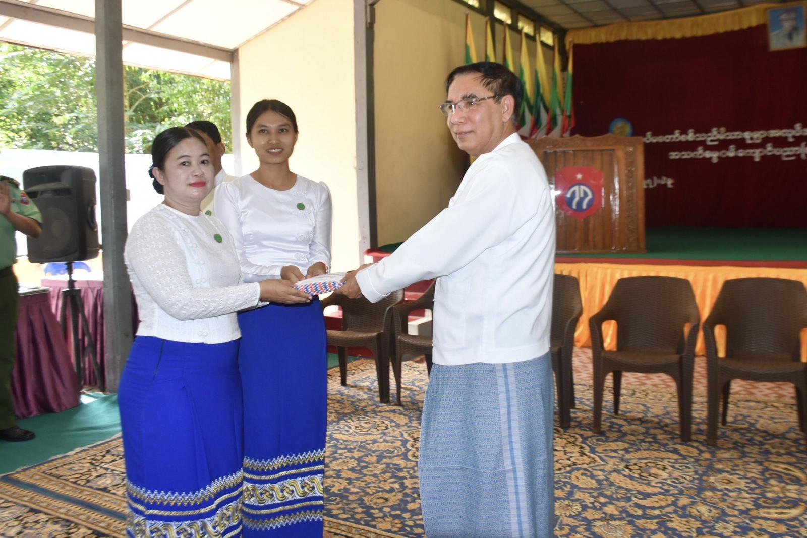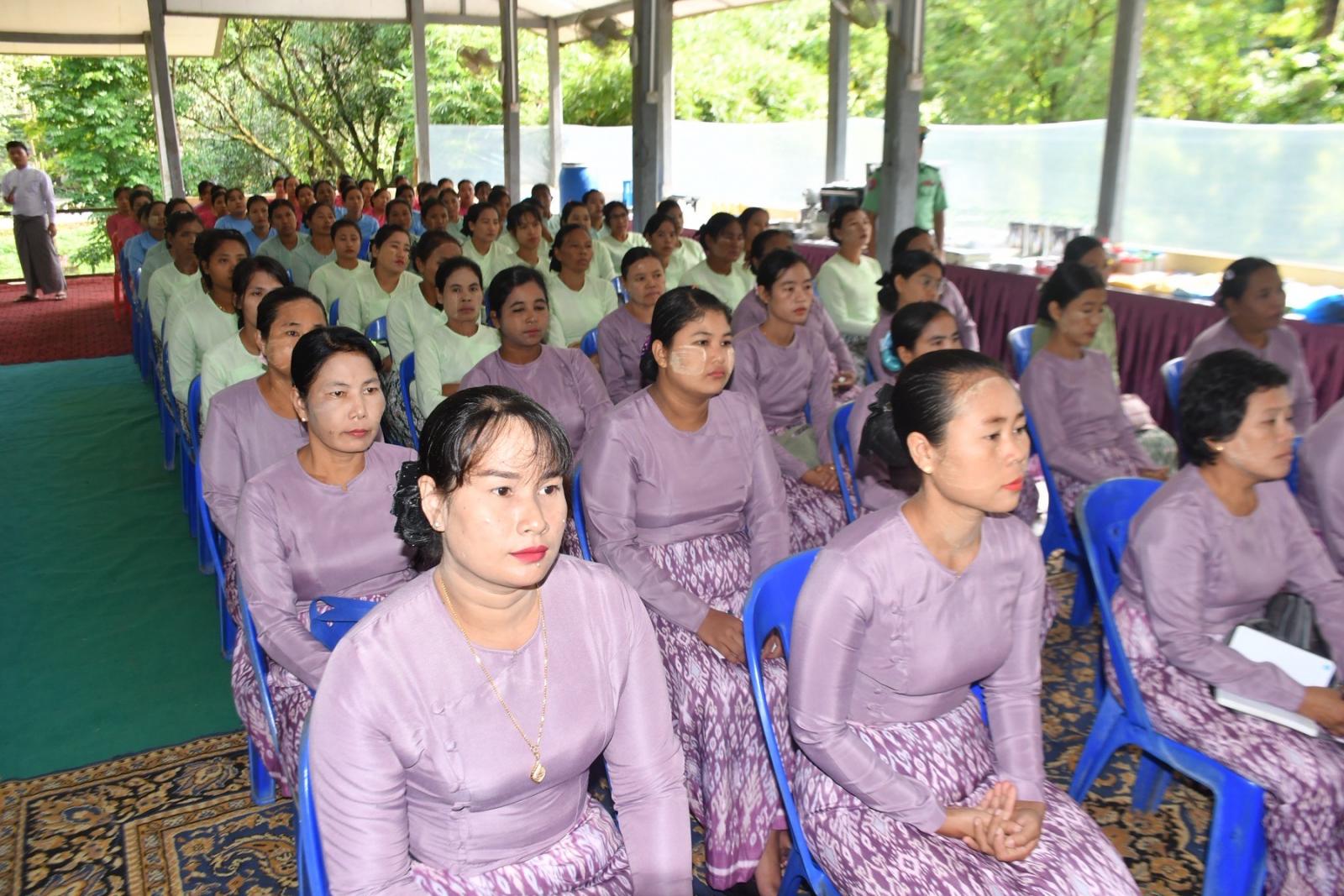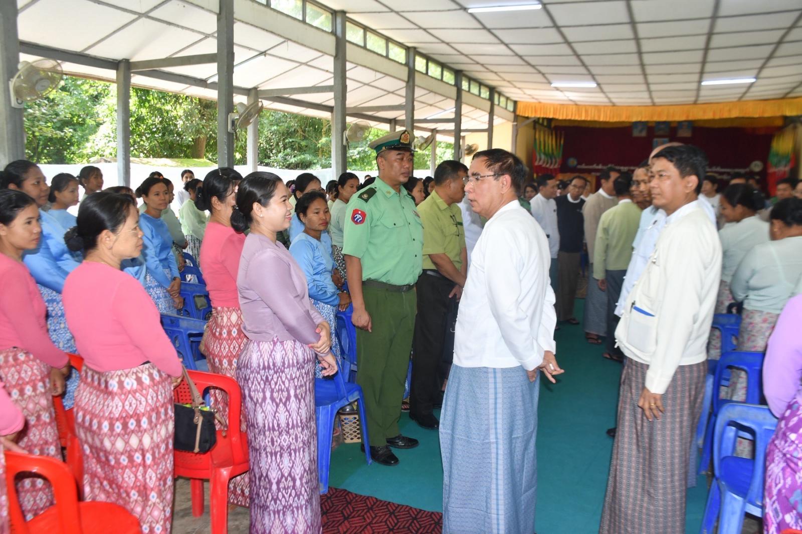 ပဲခူးတိုင်းဒေသကြီးအစိုးရအဖွဲ့၏ လမ်းညွှန်မှုဖြင့် တပ်မတော်စစ်သည်မိသားစုများ အလုပ်အကိုင် အခွင့်အလမ်းများ ဖြစ်ထွန်းပေါ်ပေါက်လာစေနှင့် မိသားစုတစ်ပိုင်တစ်နိုင် ကိုယ်ပိုင်လုပ်ငန်းငယ်များ ထူထောင်နိုင်ရေးနှင့် ဝင်ငွေတိုးတက်ရရှိစေရေးအတွက် စက်တင်ဘာလ (၁၅) ရက်နေ့၊ နံနက်ပိုင်းက ပဲခူးမြို့ အမှတ်(၇၇)ခြေမြန်တပ်မဌာနချုပ်၊ ရန်ငြိမ်းအေးခန်းမ၌ “အသက်မွေးဝမ်းကျောင်းပညာ (စက်ချုပ်၊ စားသောက်ကုန်၊ လူသုံးကုန်) သင်တန်းများ” ဖွင့်ပွဲအခမ်းအနားကျင်းပပြုလုပ်ရာ ပဲခူးတိုင်းဒေသကြီးဝန်ကြီးချုပ် ဦးမျိုးဆွေဝင်း တက်ရောက်ဖွင့်လှစ်ပေးခဲ့သည်။
