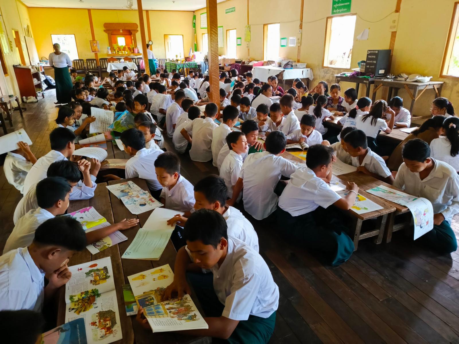 မွန်ပြည်နယ်၊ သထုံမြို့နယ်တွင် ပြန်ကြားရေးနှင့်ပြည်သူ့ဆက်ဆံရေးဦးစီးဌာနနှင့် အခြေခံပညာဦးစီးဌာနတို့ပူးပေါင်း၍ ကျောင်းသားကျောင်းသူများ စာဖတ်ရှိန်မြင့်မားပြီး ဗလငါးတန်ဖွံ့ဖြိုးရေးအတွက် ယနေ့နံနက်ပိုင်းက သထုံမြို့၊ ဘင်လှိုင်ရပ်ကွက်ရှိ ပရိုကိုးအခြေခံပညာမူလတန်းကျောင်း၌ နယ်လှည့်စာကြည့်တိုက်ဖွင့်လှစ်ပြီး အသိပညာပေးဟောပြောခြင်းနှင့် နံရံကပ်စာစောင်ပြသခြင်းလုပ်ငန်းများကို ဆောင်ရွက်ခဲ့ကြသည်။