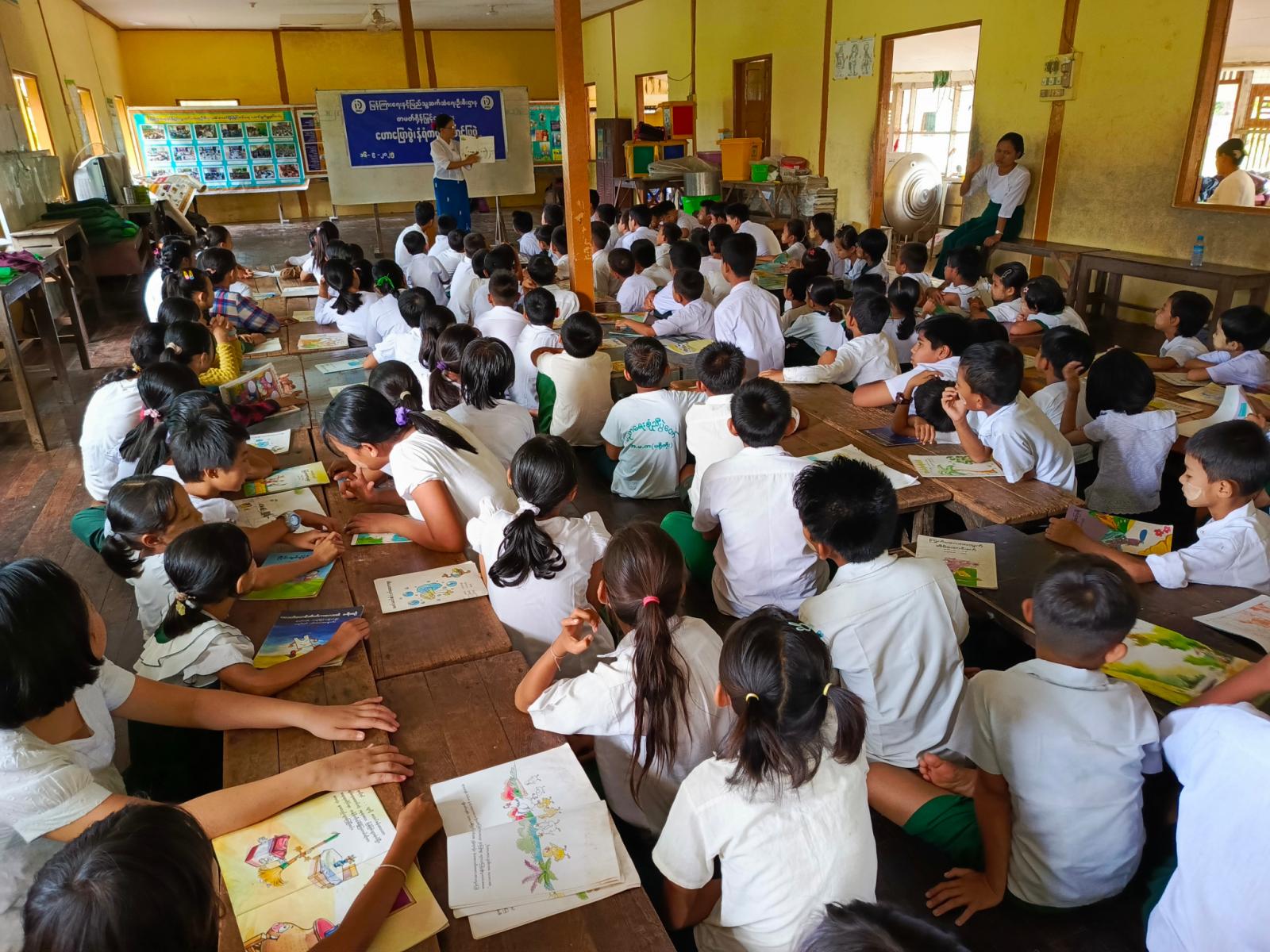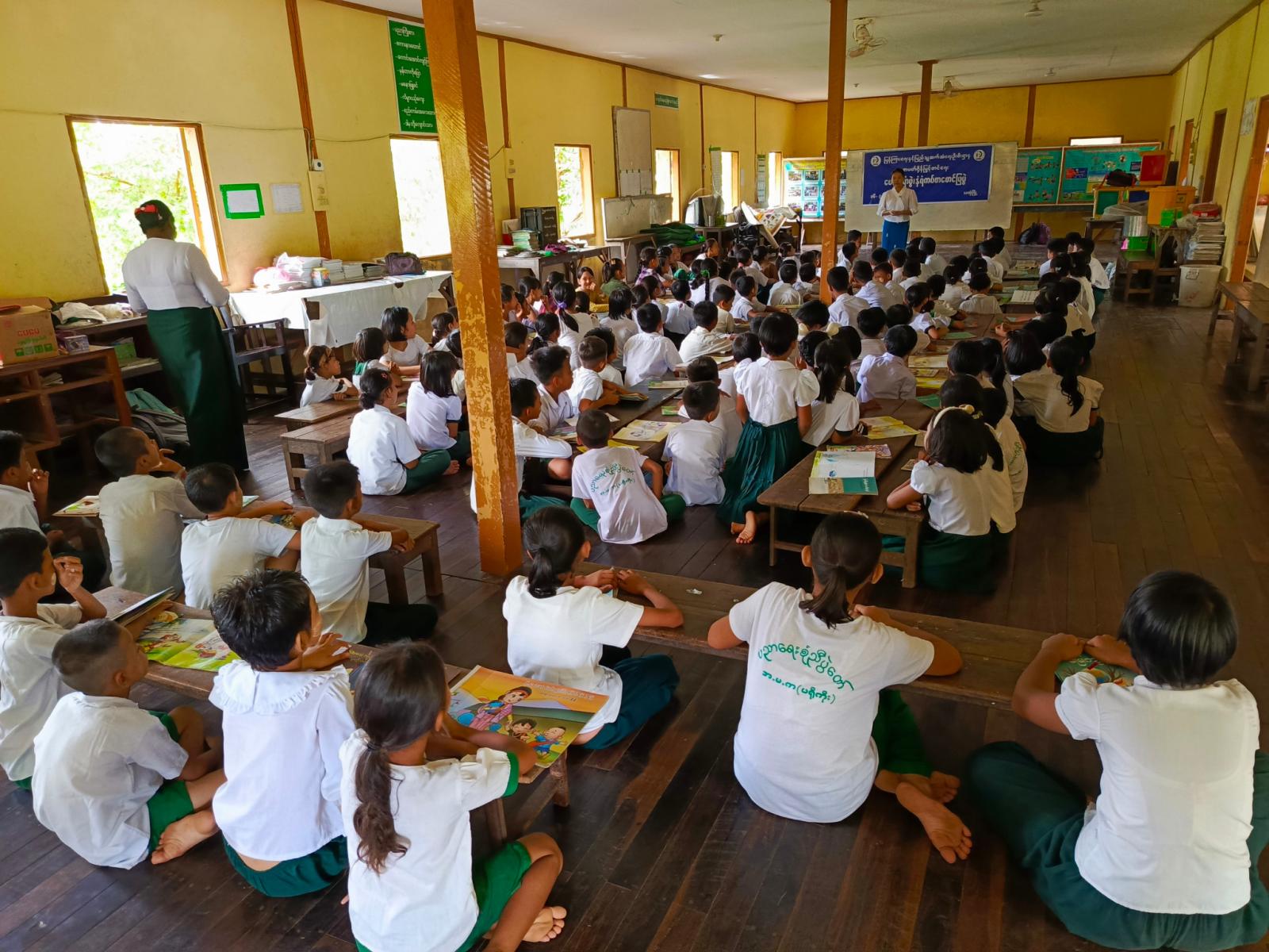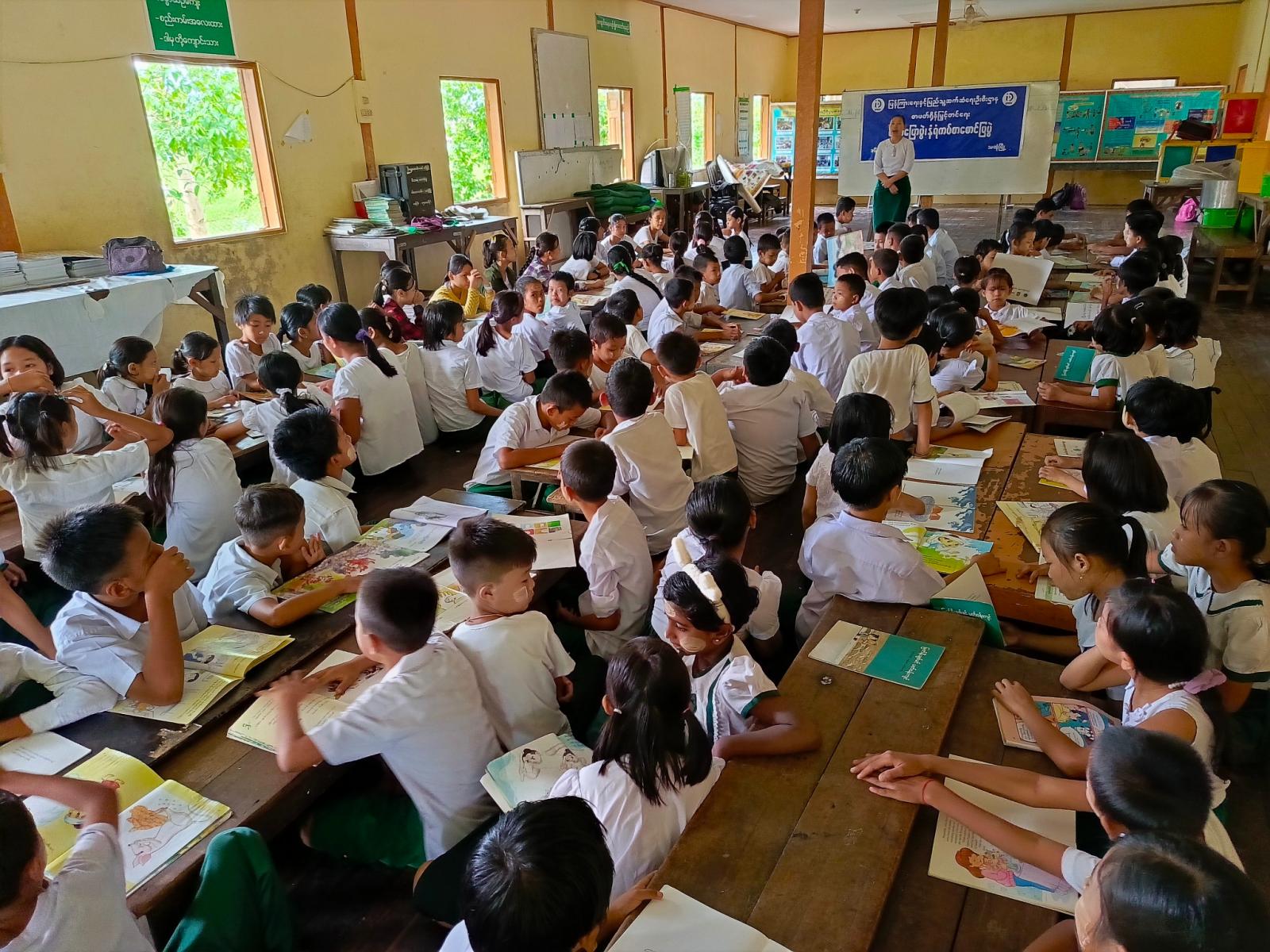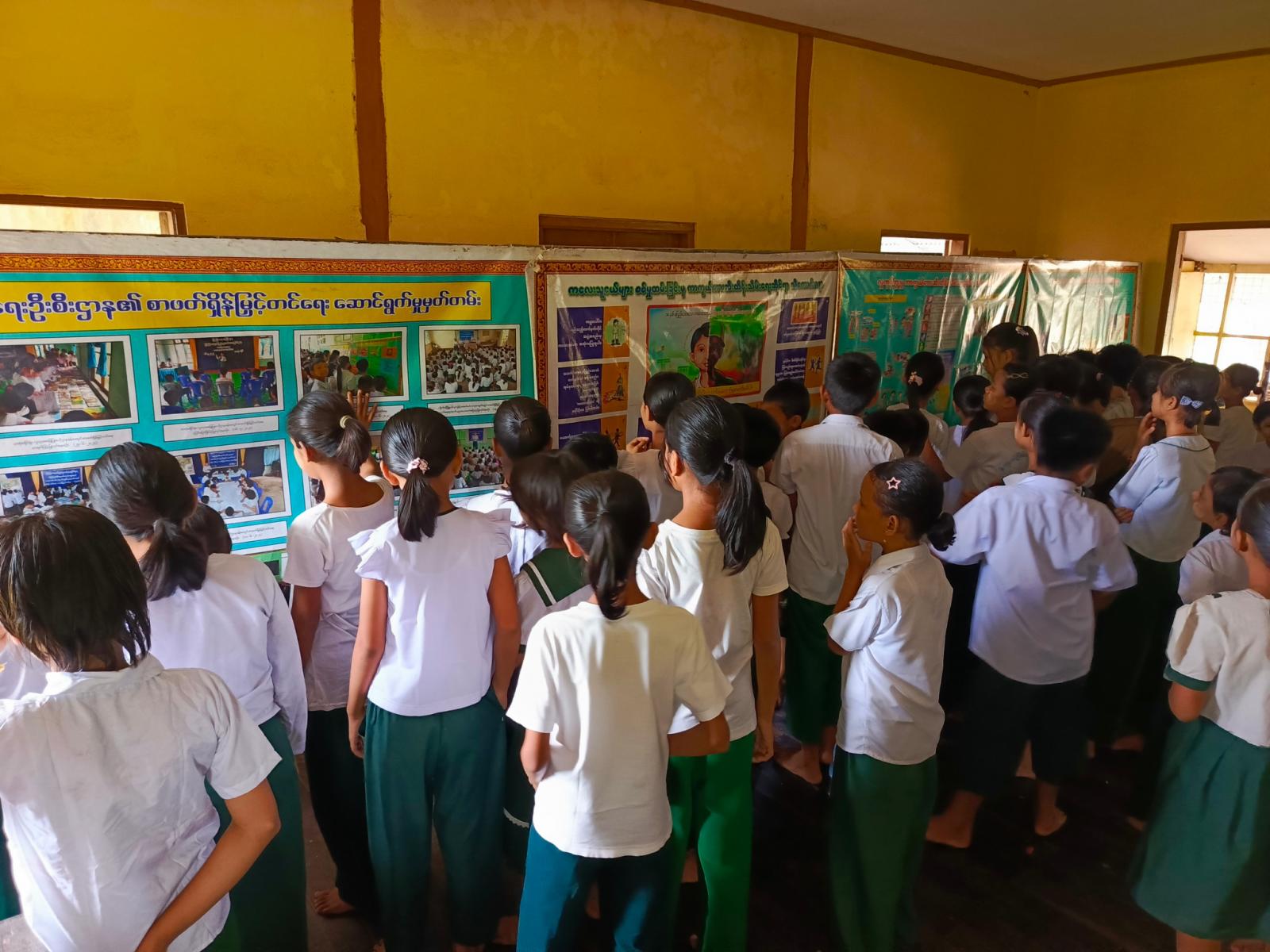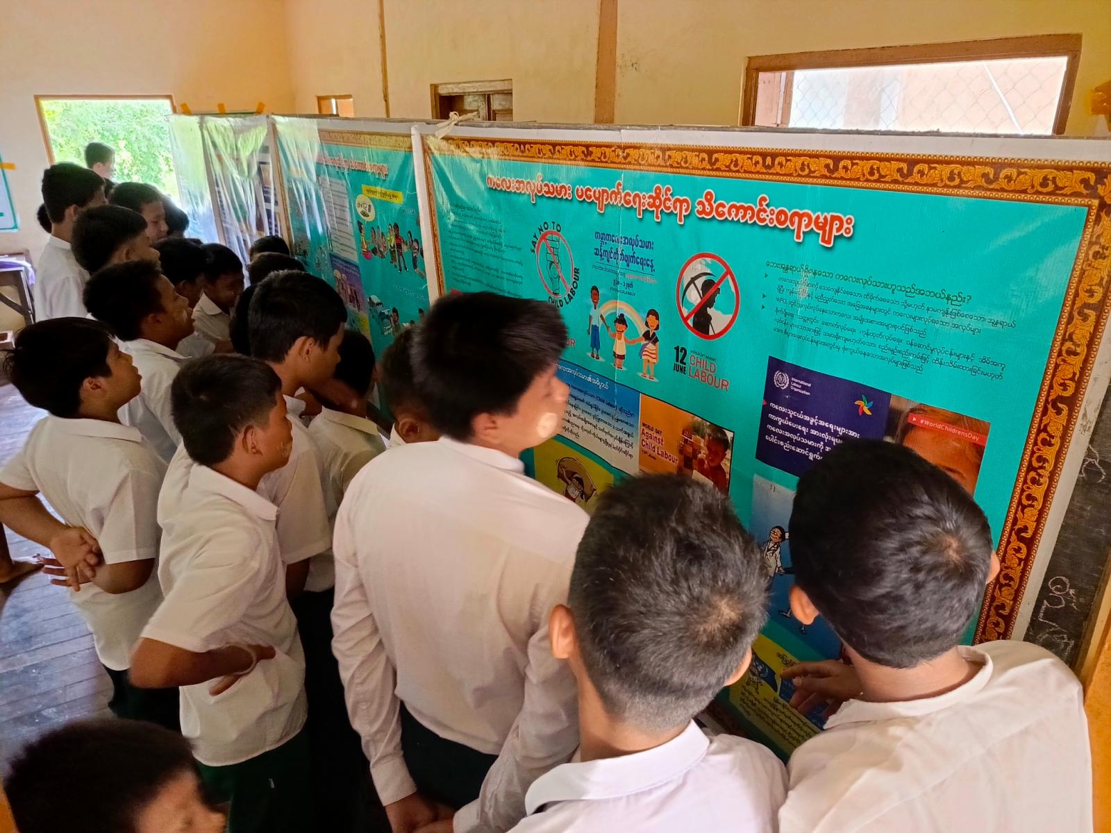 အဆိုပါ အသိပညာပေးလုပ်ငန်းတွင် ပြန်ကြားရေးနှင့်ပြည်သူ့ဆက်ဆံရေးဦးစီးဌာနမှ ကျောင်းသူကျောင်းသားများ ဖတ်ရှုလေ့လာနိုင်ရန် ကလေးကဗျာများ၊ ရုပ်ပြပုံပြင်များ၊ စာစောင်များစသည့် ကလေးများအသိပညာတိုးပွားရေး စာအုပ်စာပေများနှင့် စာဖတ်ရှိန်မြှင့်တင်ရေး၊ လူကုန်ကူးမှုအန္တရာယ် သတိပြုကာကွယ်ရေး စသည့်အသိပညာပေး နံရံကပ်စာစောင်များတို့ကို ခင်းကျင်းပြသရာ ကျောင်းသား၊ ကျောင်းသူများမှစိတ်ပါ၀င်စားစွာ ကြည့်ရှုလေ့လာခဲ့ကြောင်း သိရသည်။