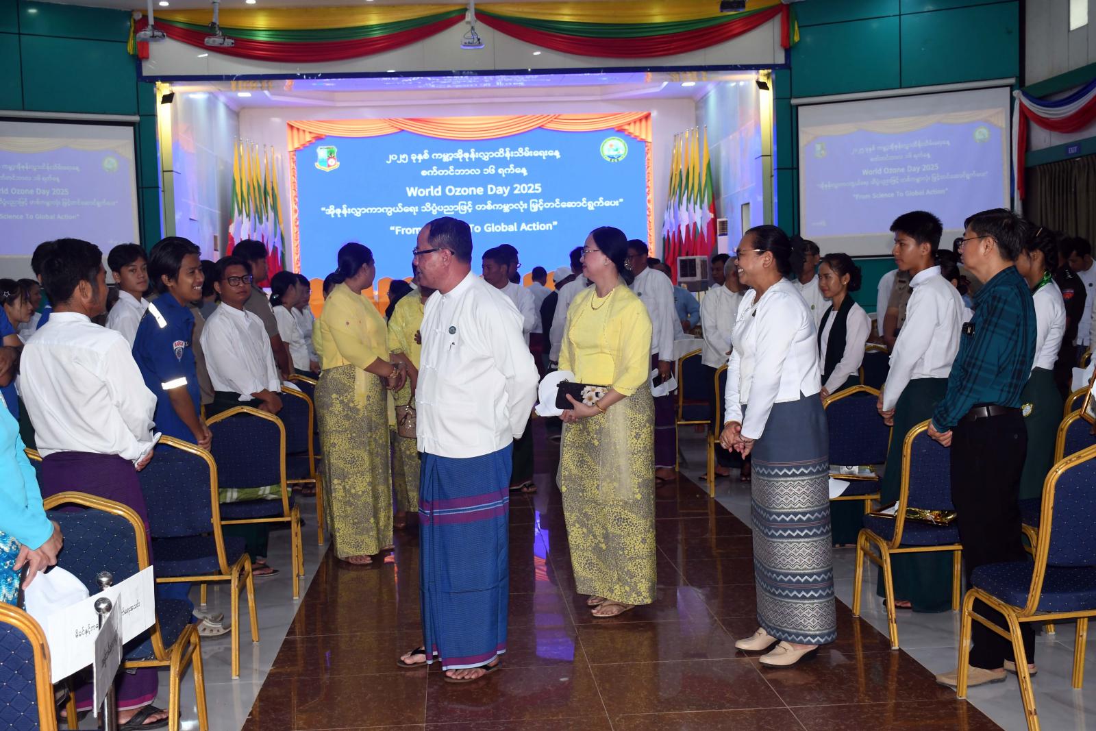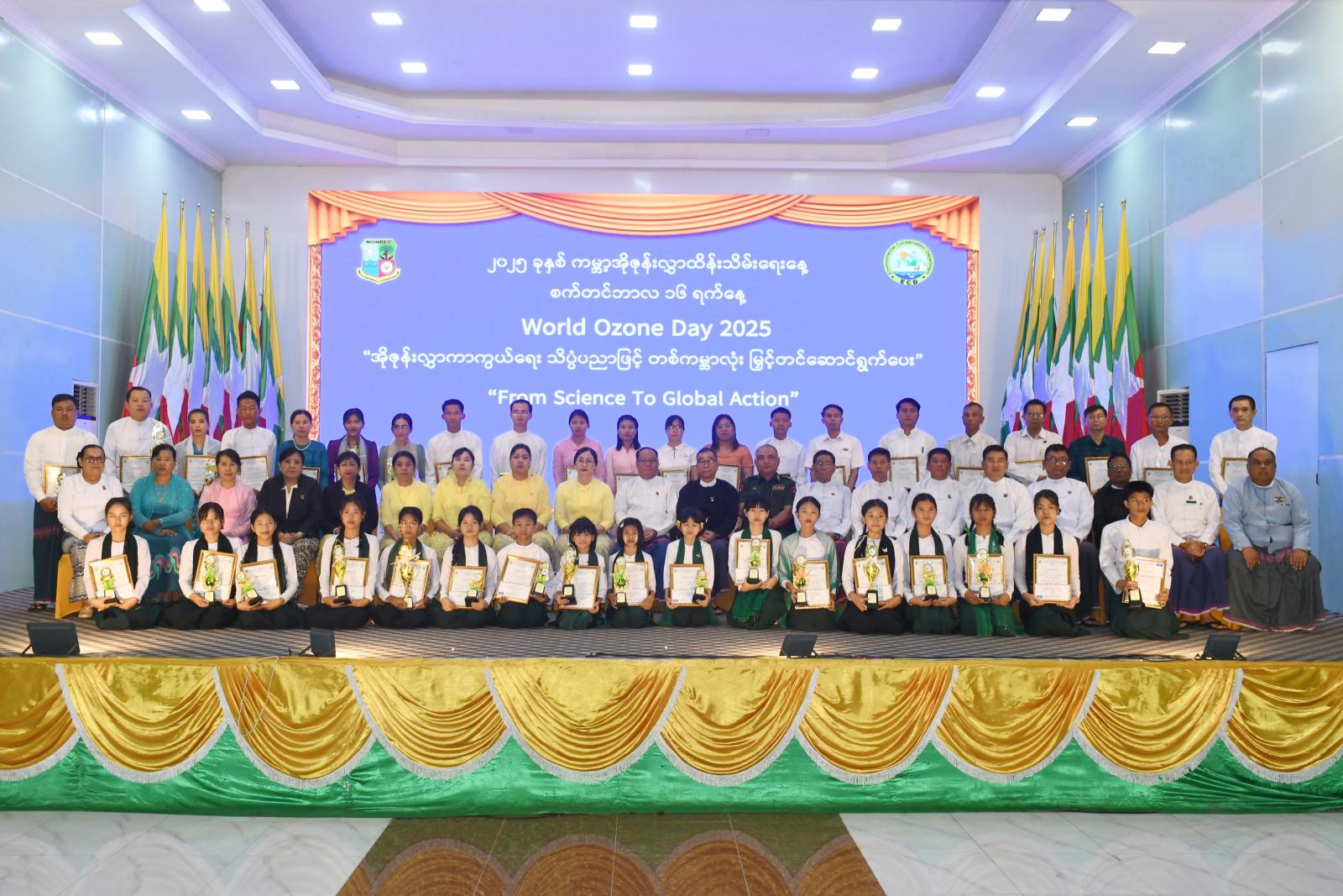 ထို့နောက် ပြည်နယ်ဝန်ကြီးချုပ်၊ ပြည်နယ်အမျိုးသမီးရေးရာအဖွဲ့နှင့် မိခင်နှင့်ကလေးစောင့်ရှောက်မှုကြီးကြပ်ရေးအဖွဲ့ နာယကနှင့်အဖွဲ့ဝင်များ၊ ပြည်နယ်တရားလွှတ်တော်တရားသူကြီးချုပ်၊ ပြည်နယ်အစိုးရအဖွဲ့ဝင်များ၊ ပြည်နယ်၊ ခရိုင်၊ မြို့နယ်အဆင့်ဌာနဆိုင်ရာများ၊ ဆုရကျောင်းသား၊ ကျောင်းသူများ၊ ဒေသဆိုင်ရာခရီးသွားလုပ်ငန်းကော်မတီမှအဖွဲ့ဝင်များ၊ အအေးပေးပစ္စည်းဆိုင်ရာလုပ်ငန်းရှင်များ၊ ဖိတ်ကြားထားသော ဧည့်သည်တော်များက ကုလသမဂ္ဂအထွေထွေအတွင်းရေးမှူးချုပ်၏ သဝဏ်လွှာ၊ ကုလသမဂ္ဂပတ်ဝန်းကျင်အစီအစဉ် (UNEP) ဗီဒီယို၊ ၂၀၂၅ ခုနှစ် ကမ္ဘာ့အိုဇုန်းလွှာထိန်းသိမ်းရေးနေ့အထိမ်းအမှတ် အသိပညာပေးဗီဒီယိုတို့ကို အတူတကွ ကြည့်ရှုခဲ့ကြပြီး ပြည်နယ်ဝန်ကြီးချုပ်၊ ပြည်နယ်အမျိုးသမီးရေးရာအဖွဲ့နှင့် မိခင်နှင့်ကလေးစောင့်ရှောက်မှုကြီးကြပ်ရေးအဖွဲ့နာယက၊ ပြည်နယ်တရားလွှတ်တော်တရားသူကြီးချုပ်၊ ပြည်နယ်အစိုးရအဖွဲ့ဝင်များနှင့် ဌာနဆိုင်ရာတာဝန်ရှိသူများက ကမ္ဘာ့အိုဇုန်းလွှာထိန်းသိမ်းရေးနေ့အထိမ်းအမှတ် အလွတ်တန်းဆောင်းပါးပြိုင်ပွဲ၊ အဆင့်မြင့်ပညာအဆင့် စာစီစာကုံးပြိုင်ပွဲ၊ အခြေခံပညာအထက်တန်းနှင့် အလယ်တန်းအဆင့် စာစီစာကုံးပြိုင်ပွဲ၊ ပန်းချီပြိုင်ပွဲတွင် ပထမ၊ ဒုတိယ၊ တတိယဆု ရရှိကြသူများ၊ နှစ်သိမ့်ဆုရရှိကြသူများနှင့် အခမ်းအနားဖြစ်မြောက်ရေးအတွက် ဝိုင်းဝန်းကူညီဆောင်ရွက်ပေးသူများအား ဂုဏ်ပြုဆုများနှင့်ဂုဏ်ပြုမှတ်တမ်းလွှာများကို အသီးသီးပေးအပ်ချီးမြှင့်ကြကာ စုပေါင်းမှတ်တမ်းဓာတ်ပုံများ ရိုက်ကူးခဲ့ကြသည်။