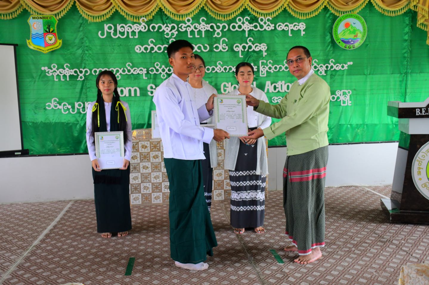 ဆက်လက်ပြီး ၂၀၂၅ ခုနှစ်၊ ကမ္ဘာ့အိုဇုန်းလွှာထိန်းသိမ်းရေးနေ့အထိမ်းအမှတ် ထက်၊ လယ်၊ မူ အဆင့်စာစီစာကုံး၊ ပန်းချီပြိုင်ပွဲ၌ဆုရရှိကြသော ကျောင်းသား၊ ကျောင်းသူများအား ပထမဆု၊ ဒုတိယဆု၊ တတိယဆု၊ နှစ်သိမ့်ဆုများကို ခရိုင်စီမံခန့်ခွဲရေးနှင့်အုပ်ချုပ်ရေးကော်မတီဥက္ကဋ္ဌ၊ ခရိုင်အုပ်ချုပ်ရေးမှူး ဦးကောင်းစံလင်း၊ ခရိုင်စီမံအဖွဲ့ဝင်(၂) ဦးစိန်သောင်း၊ မြို့နယ်စီမံခန့်ခွဲရေးနှင့်အုပ်ချုပ်ရေးကော်မတီဥက္ကဋ္ဌ မြို့နယ်အုပ်ချုပ်ရေးမှူးဦးဇော်မော်အောင်၊ ပတ်ဝန်းကျင်ထိန်းသိမ်းရေးဦးစီးဌာန၊ လက်ထောက်ညွှန်ကြားရေးမှူး ဦးရန်နိုင်ထွန်း၊ ဒုတိယမြို့နယ်ပညာရေးမှူး ဦးဇေယျာအောင်၊ ခရိုင်၊ မြို့နယ်အဆင့် ဌာနဆိုင်ရာ တာဝန်ရှိသူများက ဆုများချီးမြှင့်ခဲ့ကြသည်။