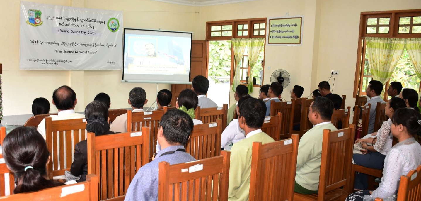 ပဲခူးတိုင်းဒေသကြီး၊ တောင်ငူခရိုင်၊ တောင်ငူမြို့၊ ခရိုင်ပတ်ဝန်းကျင်ထိန်းသိမ်းရေးဦးစီးဌာနမှ ၂၀၂၅ ခုနှစ်၊ ကမ္ဘာ့အိုဇုန်းလွှာထိန်းသိမ်းရေးနေ့ အထိမ်းအမှတ်အခမ်းအနားကို " From science to global action - အိုဇုန်းလွှာကာကွယ်ရေးသိပ္ပံပညာဖြင့် တစ်ကမ္ဘာလုံးမြှင့်တင်ဆောင်ရွက်ပေး"ဟူသော ဆောင်ပုဒ်ဖြင့် ယနေ့နံနက် ၈ နာရီက အဆိုပါရုံးအစည်းအဝေးခန်းမ၌ ကျင်းပသည်။