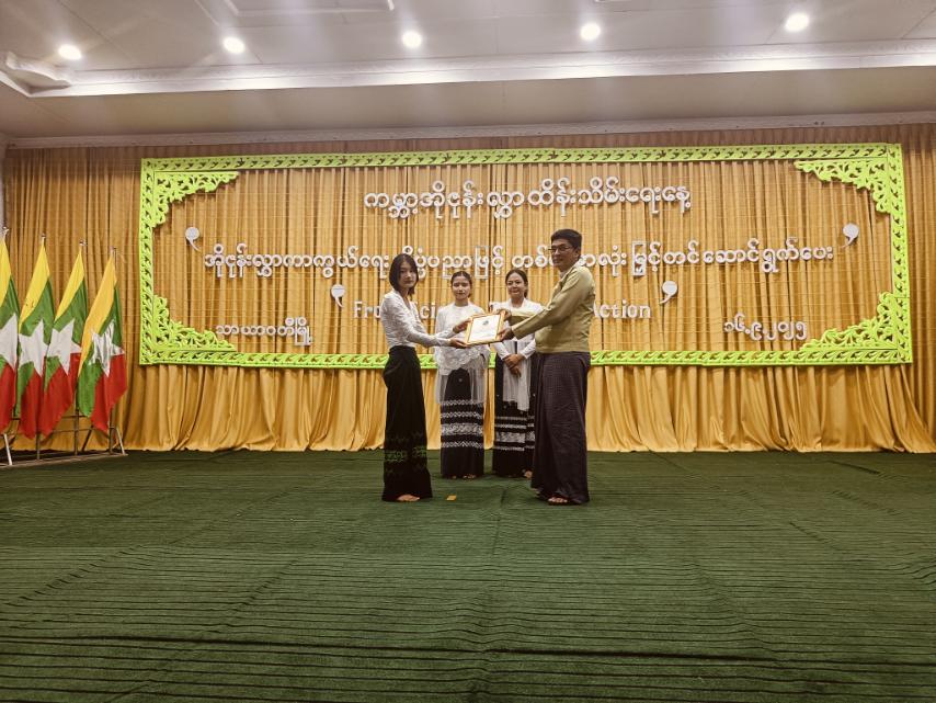 ယင်းနောက် ပတ်ဝန်းကျင်ထိန်းသိမ်းရေးဦးစီးဌာန လက်ထောက်ညွှန်ကြားရေးမှူး ဒေါ်စုမြတ်သန္တာဖွေးက “၃၅ နှစ်တာ မွန်ထရီရယ် အောင်မြင်မှုခရီး- သက်ရှိတွေကာကွယ်ဖို့ ကမ္ဘာလုံးနှင့်အဝှမ်းပူးပေါင်း ဆောင်ရွက်စို့” ဟူသည့် ဆောင်ပုဒ်နှင့်အညီ အိုဇုန်းလွှာမပျက်စီးအောင် မည်သို့ကာကွယ်ဆောင်ရွက်သင့်ကြောင်း၊ အိုဇုန်းလွှာပျက်စီးစေသော ဒြပ်ပစ္စည်းများ ထိန်းချုပ်ခြင်းဆိုင်ရာ လမ်းညွှန်ချက်များနှင့် အိုဇုန်းလွှာပျက်စီးစေသော ဒြပ်ပစ္စည်းများအကြောင်း၊ အိုဇုန်းလွှာပျက်စီး ခဲ့လျှင်ဖြစ်ပေါ်လာနိုင်သည့် အကျိုးဆက်တွေ အကြောင်းများကို ဆွေးနွေးပြောကြားပြီး ကမ္ဘာ့အိုဇုန်းလွှာထိန်းသိမ်းရေးနေ့ အထိမ်းအမှတ် စာစီစာကုံးပြိုင်ပွဲတွင် ဆုရရှိသောကျောင်းသား၊ကျောင်းသူများအား တာဝန်ရှိသူများက ဆုများအသီးသီး ချီးမြှင့်ပေးခဲ့သည်။