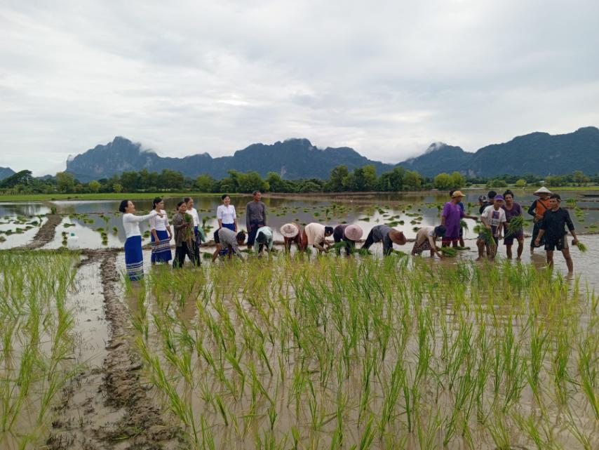ကရင်ပြည်နယ် ဘားအံမြို့နယ်အတွင်း မိုးစပါးစီမံကိန်းတွင်ပါဝင်သော ကော့တရုတ်ရကျေးရွာ တက်သစ်စ စိုက်ပျိုးရေးနှင့်အထွေထွေလုပ်ငန်းသမဝါယမအသင်း၏ လယ်ယာလုပ်ငန်းခွင်တွင် အောင်နိုင်တိုးမိုးစပါးစိုက်ပျိုးနေမှုကို ပြည်နယ်သမဝါယမဦးစီးဌာန ညွှန်ကြားရေးမှူးဒေါ်အေးပွင့်နှင့် တာဝန်ရှိသူများက စက်တင်ဘာ ၁၆ ရက် နံနက်ပိုင်းက ကွင်းဆင်းကြည့်ရှုသည်။
