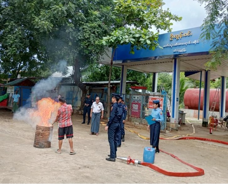 အဆိုပါလုပ်ငန်းကို မြို့နယ်မီးသတ်တပ်ဖွဲ့ဦးစီးအရာရှိ ဦးအေးမင်းမောင်ဦးစီး၍ မီးသတ်တပ်ဖွဲ့ဝင်များက အနောက်ပိုင်းရပ်ကွက် ဦးထွန်းဝင်း စက်သုံးဆီအရောင်းဆိုင်၌ မီးဘေးလုံခြုံရေးလုပ်ငန်းများဆောင်ရွက်ထားရှိမှု၊ မီးငြှိမ်းသတ်ရေးနှင့် ကြိုတင်ကာကွယ်ရေးပစ္စည်းများဆောင်ရွက်ထားရှိမှုအခြေအနေများ ကွင်းဆင်းစစ်ဆေးခြင်း၊ အရေပေါ်မီးငြှိမ်းသတ်ရေးပစ္စည်းများအား လက်တွေ့အသုံးပြုမှုနည်းလမ်းများအား ကိုင်တွယ်အသုံးပြုတတ်စေရန် ဆိုင်ဝန်ထမ်းများကို လက်တွေ့လေ့ကျင့် ပညာပေးဆောင်ရွက်ခဲ့ကြောင်း သိရသည်။