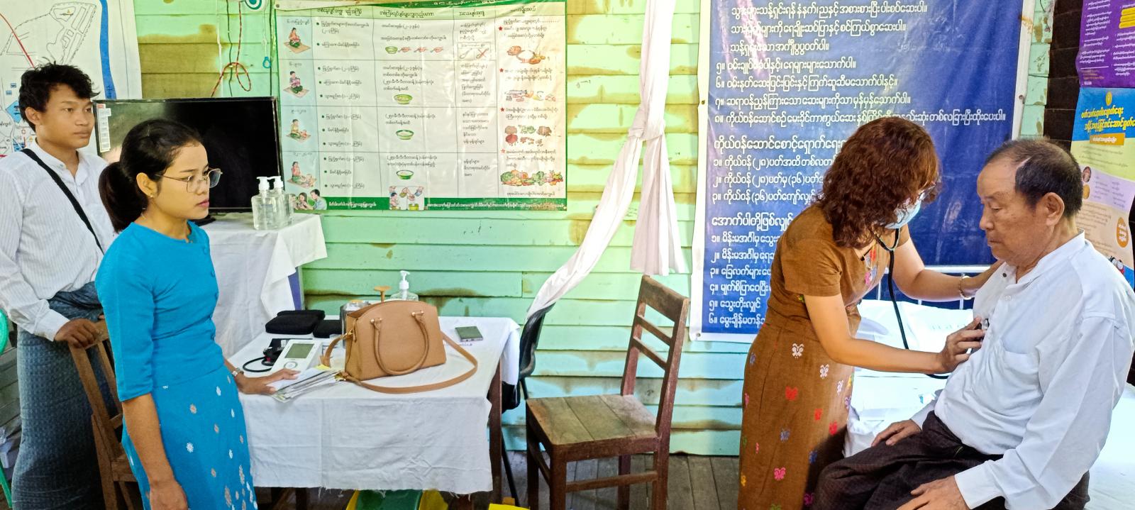 နိုင်ငံ့ဝန်ထမ်းအငြိမ်းစားများအား ကျန်းမာရေးစစ်ဆေးခြင်းနှင့် ဆေးကုသပေးရာတွင် မြို့နယ်ပြည်သူ့ကျန်းမာရေးဦးစီးဌာနမှ ကျန်းမာရေးဝန်ထမ်း ဆရာ၊ ဆရာမများက အငြိမ်းစားဝန်ထမ်များအား စာရင်းပေးသွင်းပြီး သွေးပေါင်ချိန်တိုင်းတာခြင်း၊ ဆီးချို၊ သွေးချို စစ်ဆေးပေးခြင်း၊ နှလုံးစစ်ဆေးပေးခြင်းနှင့် လိုအပ်သည့် ဆေးဝါးများအား အခမဲ့ဆောင်ရွက်ပေးခဲ့သည်။