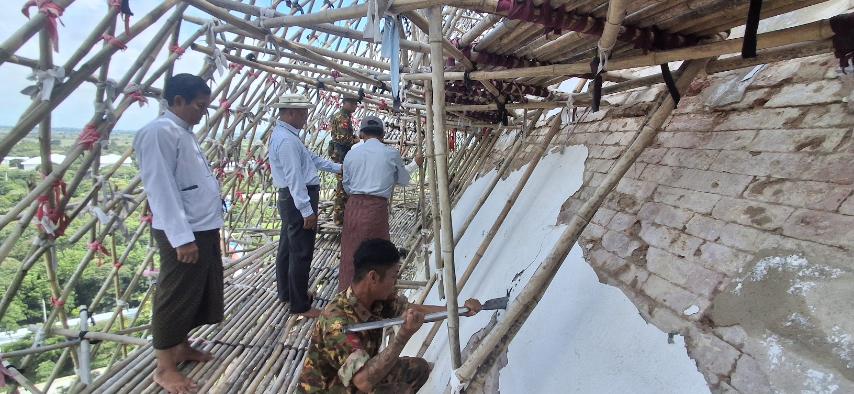 စစ်ကိုင်းတိုင်းဒေသကြီးအစိုးရအဖွဲ့ လူမှုရေးရာရေးဝန်ကြီး ဦးညွန့်ဝင်းအောင်၊ မြို့နယ်စီမံခန့်ခွဲရေးနှင့်အုပ်ချုပ်ရေးကော်မတီဥက္ကဋ္ဌ ဦးကျော်စွာမောင်စိုးနှင့် တာဝန်ရှိသူများသည် ယနေ့နံနက်ပိုင်းတွင် မန္တလေးငလျင်ကြီး လှုပ်ခတ်ခဲ့မှုကြောင့် ထိခိုက်ပျက်စီးခဲ့သည့် စစ်ကိုင်းမြို့၊ ရာဇမဏိစူဠာ ကောင်းမှုတော်ဘုရာကြီးအား ဆေးဖြူသင်္ကန်းပြန်လည်ကပ်လှူပူဇော်နိုင်ရး၊ စိန်ဖူးတော်၊ ငှက်မြတ်နားတော်၊ ရွှေထီးတော်များ ပြန်လည်တင်လှူပူဇော်နိုင်ရေးအတွက် လုပ်ငန်းများဆောင်ရွက်နေမှုတို့အား ကြည့်ရှုစစ်ဆေးပြီး တာဝန်ယူဆောင်ရွက်နေသည့် လုပ်ငန်းအဖွဲ့များနှင့်တွေ့ဆုံကာ လိုအပ်သည်များကို ပေါင်းစပ်ညှိနှိုင်းဖြည့်ဆည်းဆောင်ရွက်ပေးခဲ့သည်။