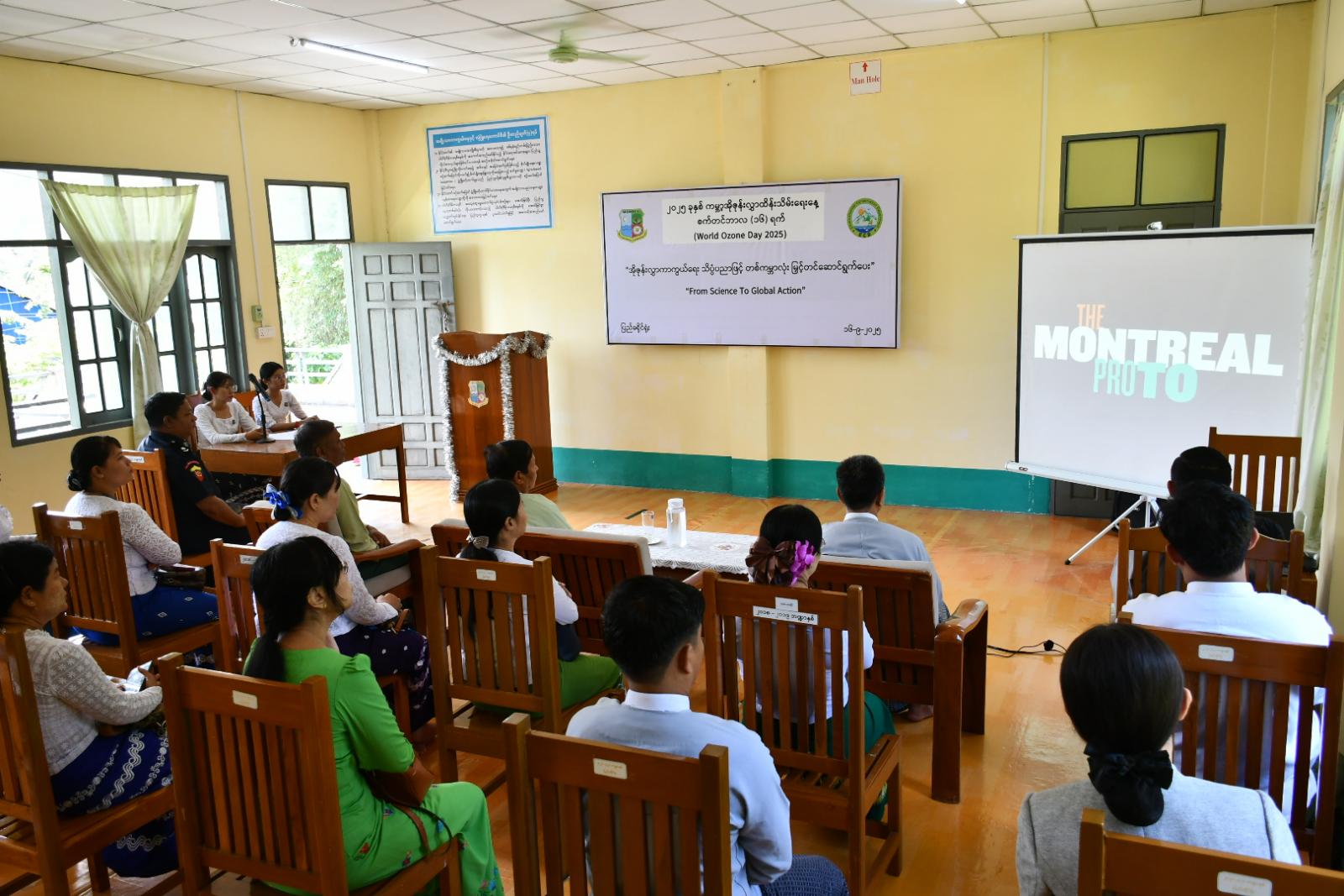 ယနေ့တွင်ကျရောက်သည့် ၂၀၂၅ ခုနှစ်၊ ကမ္ဘာ့အိုဇုန်းလွှာထိန်းသိမ်းရေးနေ့ အထိမ်းအမှတ်အခမ်းအနားကို ပြည်မြို့ရှိ ခရိုင်ပတ်ဝန်းကျင်ထိန်းသိမ်းရေးဦးစီးဌာနရုံးခန်းမ၌ ယမန်နေ့နံနက်ပိုင်းကကျင်းပရာ ပြည်ခရိုင်စီမံခန့်ခွဲရေးနှင့် အုပ်ချုပ်ရေးကော်မတီဥက္ကဋ္ဌနှင့် ခရိုင်အဆင့် ဌာနဆိုင်ရာတာဝန်ရှိသူများ တက်ရောက်ကြသည်။
