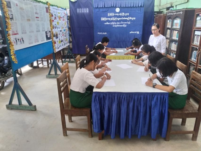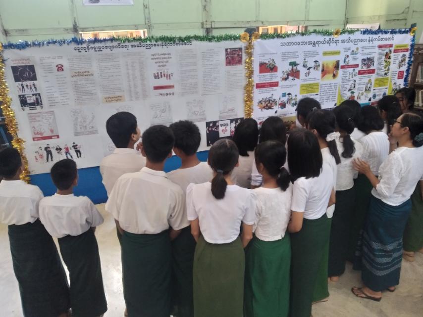 ထို့နောက် နံရံကပ်စာစောင်နှင့် စာအုပ်စာစောင်ပြပွဲကို ဆက်လက်ပြုလုပ်ရာ လူကုန်ကူးမှုပပျောက်ရေးအသိပညာပေး နံရံကပ်စာစောင်၊ သဘာဝဘေးအန္တရာယ်ဆိုင်ရာ အသိပညာပေး နံရံကပ်စာစောင်နှင့် ခင်ကျင်းပြသထားသော စာအုပ်စာစောင်များကို ကျောင်းသား၊ကျောင်းသူများမှ စိတ်ပါဝင်စားစွာ ကြည့်ရှုလေ့လာ မှတ်သားခဲ့ကြောင်း သိရသည်။