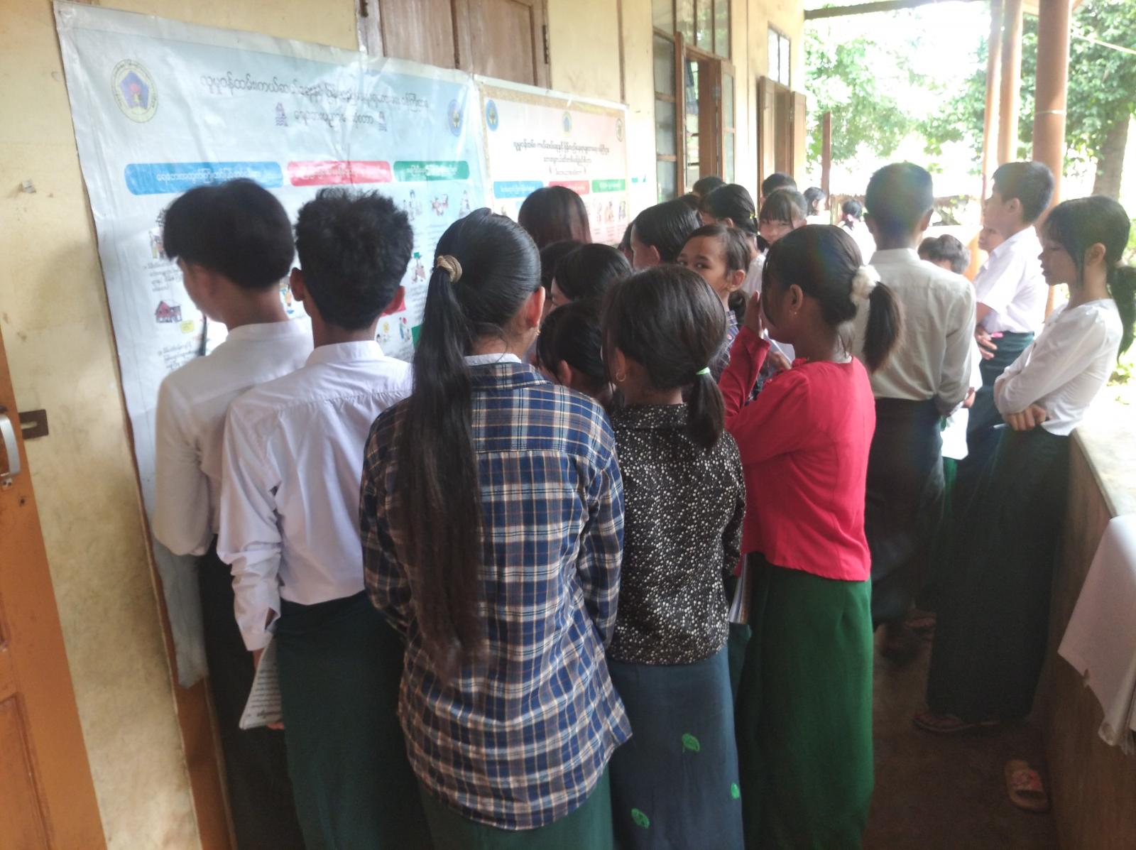 ထို့နောက် ကျောင်းသား၊ ကျောင်းသူလေးများအား အသိပညာဗဟုသုတတိုးပွားစေရန် စာပေနှင့်ပတ်သက်သော သိသင့်သိထိုက်သည့် သိကောင်းစရာအသိပညာပေး နံရံကပ်စာစောင်များ၊ သုတ၊ ရသစာအုပ်စာစောင်များအား ပြသခဲ့ရာ ကျောင်းသား၊ ကျောင်းသူများက စိတ်ပါဝင်စားစွာ လေ့လာဖတ်ရှုကြကြောင်း သိရသည်။