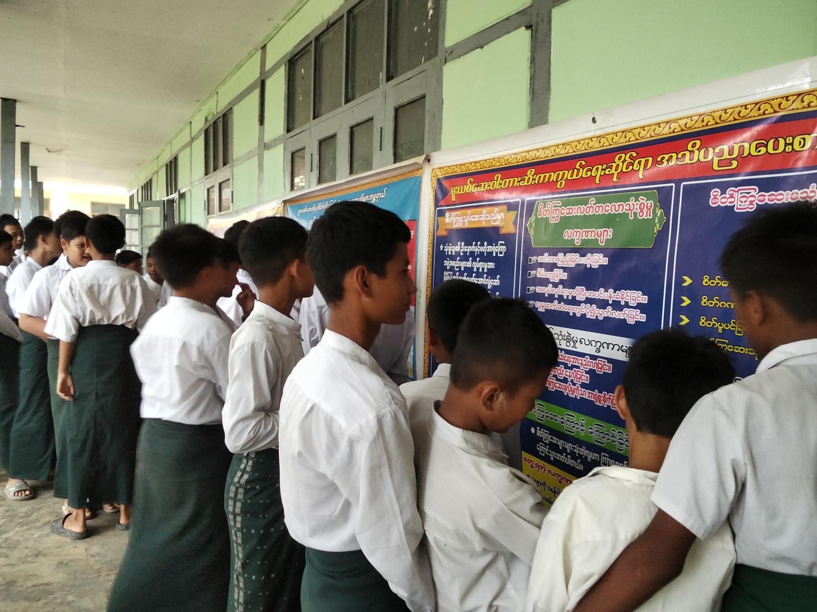 ထိုသို့ ကွင်းဆင်းဆောင်ရွက်ရာတွင် မြို့နယ်ပြန်ကြားရေးနှင့်ပြည်သူ့ဆက်ဆံရေးဦးစီးဌာန၊ မြို့နယ်ဦးစီးအရာရှိ ဒေါ်ဝင်းအိဇွန်က ကျောင်းသား ကျောင်းသူများအား စာဖတ်ခြင်းဖြင့်ရရှိသည့် အကျိုးကျေးဇူးများအား အသိပညာပေးပြောကြားပြီး မူးယစ်ဆေးဝါးအန္တရာယ် တားဆီးကာကွယ်ရေးဆိုင်ရာ နံရံကပ်စာစောင်များနှင့် စာအုပ်စာစောင်များပြသရာ ကျောင်းသား ကျောင်းသူများက စိတ်ပါဝင်စားစွာ လေ့လာဖတ်ရှုခဲ့ကြောင်း သိရသည်။