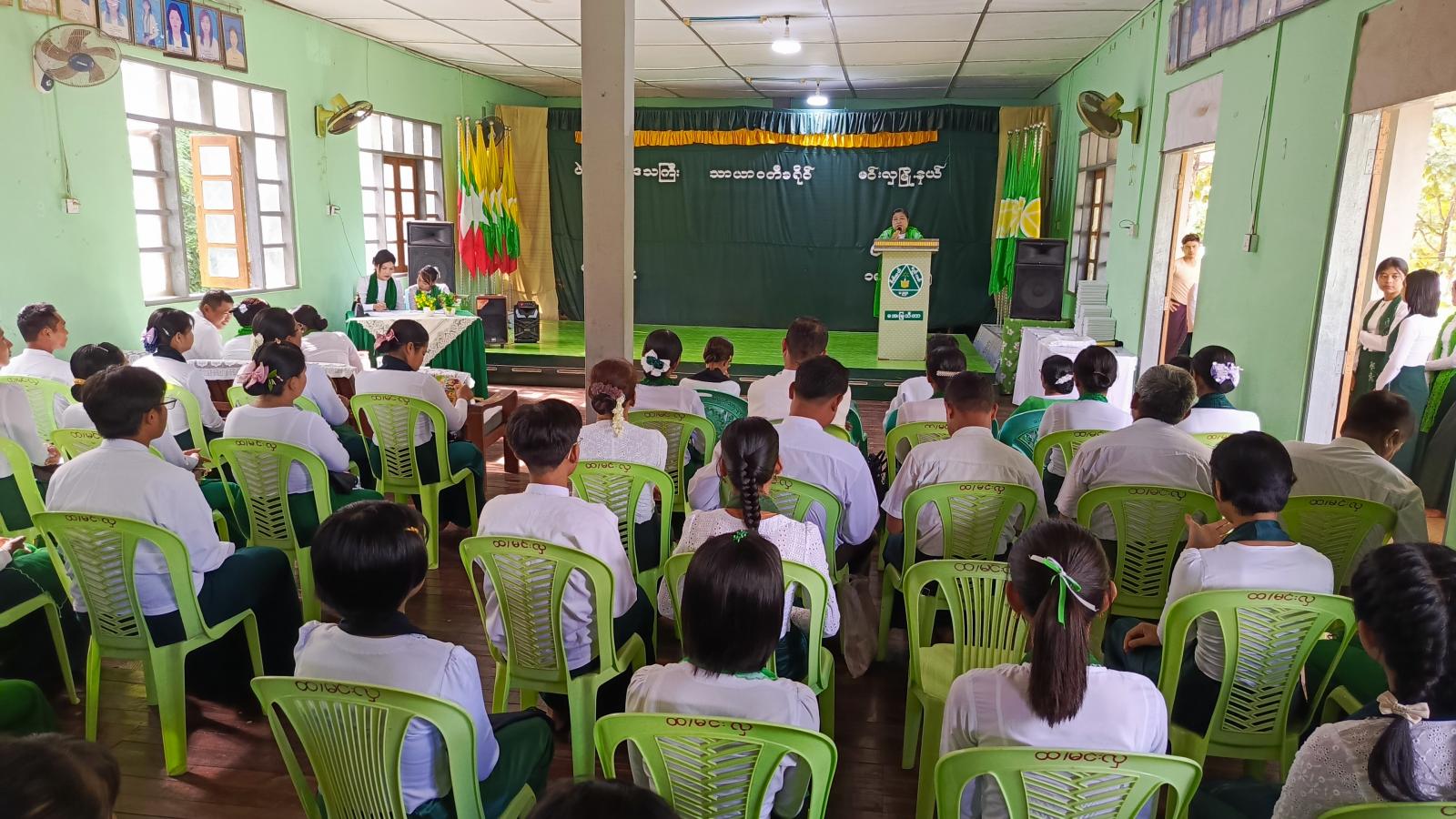 အခမ်းအနားတွင် မြို့နယ်ပညာရေးမှူးဆရာမကြီး ဒေါ်ကြည်ကြည်ချိုက ကျောင်းသား/သူများ ကျောင်းစာအပြင် အခြားဗဟုသုတများရရှိစေရန် စာအုပ်စာပေများကို လေ့လာဖတ်ရှုစေရန်နှင့် ပြိုင်ပွဲများကိုစိတ်ဝင်တစားဝင်ရောက်ယှဉ်ပြိုင်ကြရန် အား ပေးစကားများပြောကြားသည်။