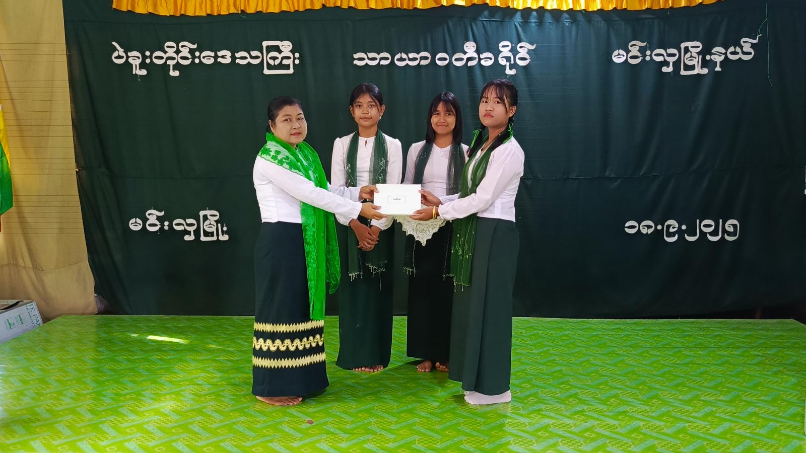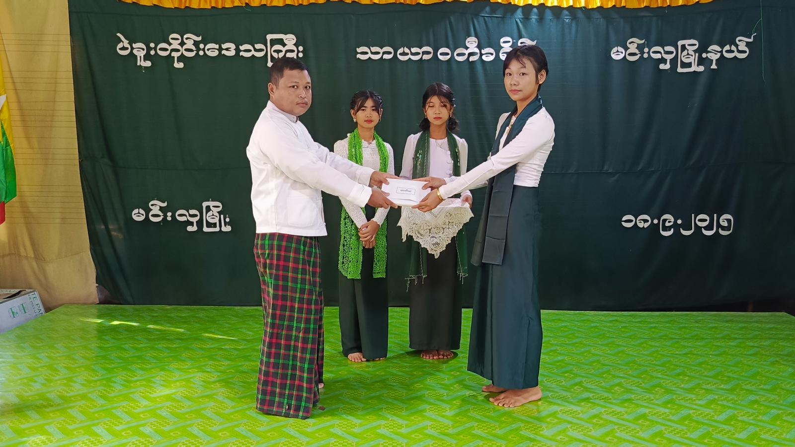 ထို့နောက် မြို့နယ်ပညာရေးမှူးဆရာ မကြီးဒေါ်ကြည်ကြည်ချိုနှင့် အခြေခံပညာကျောင်းများမှ ကျောင်းအုပ်ကြီးများက ပညာတန်ဆောင်ရုပ်ပြပြိုင်ပွဲ၊ ကမ္ဘာ့ခရီးသွားနေ့စာစီစာကုံးပြိုင်ပွဲ၊ ၂၀၂၅ ကမ္ဘာ့အို ဇုန်းလွှာထိန်းသိမ်းရေးနေ့အထိမ်း အမှတ်စာစီစာကုံးပြိုင်ပွဲ၊ကမ္ဘာ့ဆရာများနေ့ စာစီစာကုံးနှင့်ကဗျာပြိုင်ပွဲ၊ (၅၄) ကြိမ်မြောက် နိုင်ငံတကာလူငယ်များပေးစာရေးပြိုင်ပွဲ၊ ကမ္ဘာ့ပတ်ဝန်း ကျင်ထိန်းသိမ်းရေးနေ့ စာစီစာကုံးပြိုင်ပွဲ၊ (၇၈) နှစ်မြောက် အာဇာနည်နေ့အထိမ်းအမှတ် (ထက်၊ လယ်၊မူ) စာစီစာကုံးနှင့်ကဗျာပြိုင်ပွဲတို့၌ ဆုရရှိသည့် ကျောင်းသား/သူ (၄၃) ဦးအား ဆုများအသီးသီးချီးမြှင့်ပေးအပ်ခဲ့ကြောင်း သိရသည်။