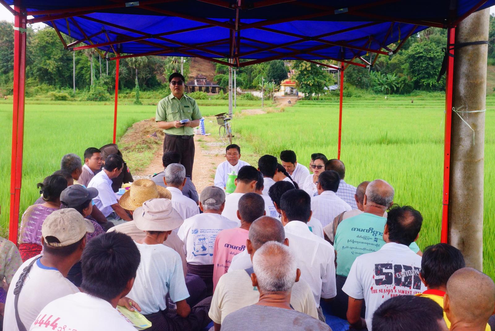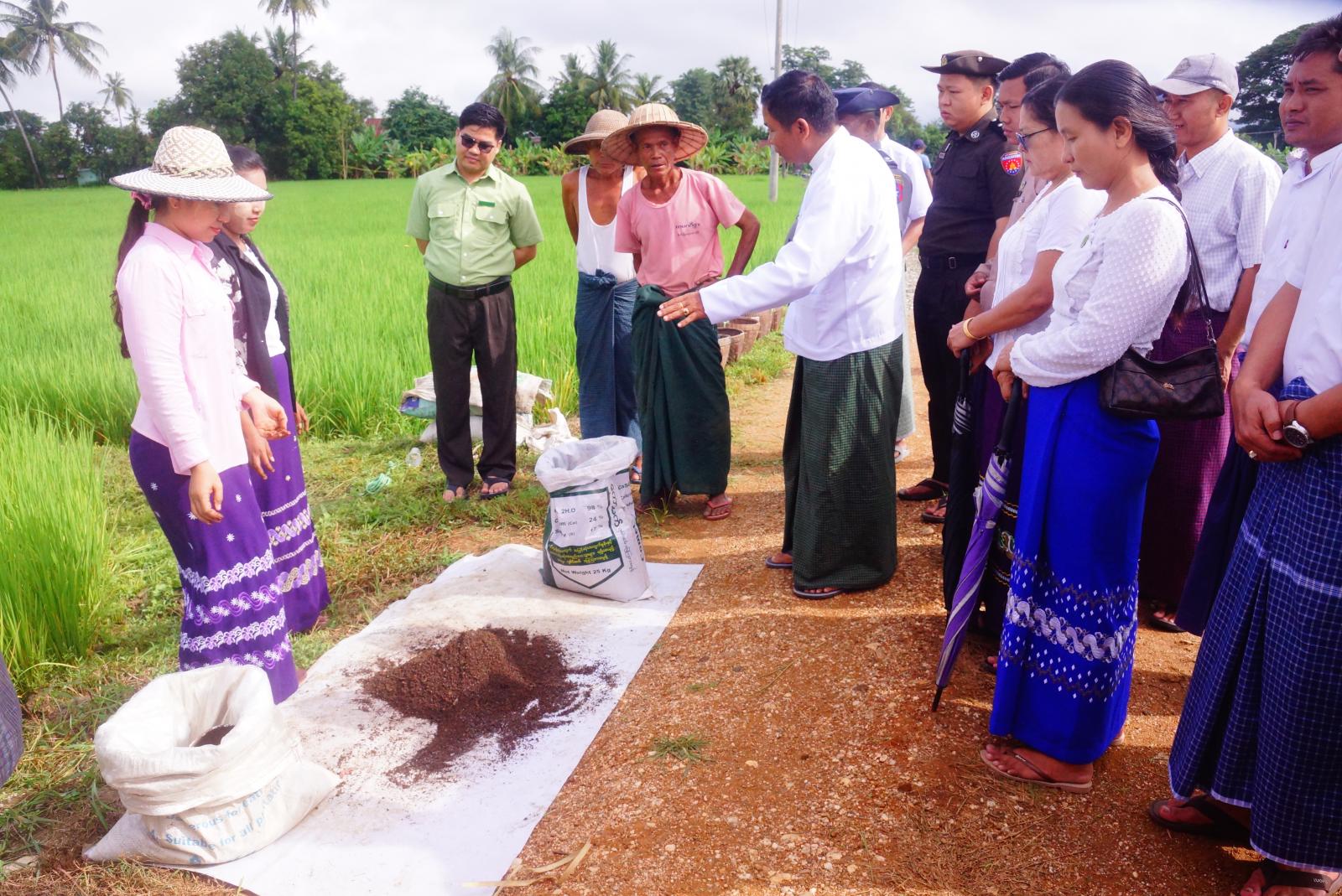 အဆိုပါကွင်းသရုပ်ပြပွဲတွင် မြို့နယ်စီမံခန့်ခွဲရေးနှင့်အုပ်ချုပ်ရေးကော်မတီဥက္ကဋ္ဌ ဦးစိုးလင်းက အဖွင့်အမှာစကားပြောကြားပြီး စိုက်ပျိုးရေးဦးစီးဌာန မြို့နယ်ဦးစီးမှူး ဦးဝင်းကိုက စပါးခင်းတွင် မြေဩဇာအသုံးပြုမည်ဆိုပါက မြေဩဇာအမျိုးအစားအလိုက် အသုံးပြုရမည့် ကာလအပိုင်းအခြားများနှင့် အသုံးပြုပုံနည်းလမ်းများ၊ စပါးပင်တွင် ဖြစ်ပွားတတ်သော ပိုးမွှားကျရောက်သည့် လက္ခဏာ၊ ရောဂါကျရောက်သည့် လက္ခဏာများနှင့် ထိုသို့ပိုးမွှားကျရောက်ခြင်း၊ ရောဂါကျရောက်ခြင်းများဖြစ်ပွားပါက စိုက်ပျိုးရေးဦးစီးဌာနှင့် ချိတ်ဆက်၍ နည်းပညာများရယူရန် တောင်သူများအား အသိပညာပေးဟောပြောခဲ့ကြောင်း သိရသည်။