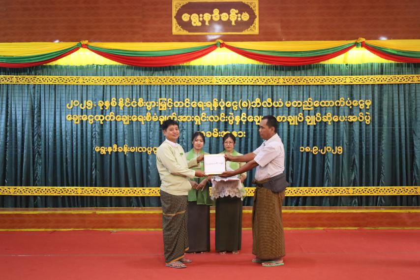 ဧရာဝတီတိုင်းဒေသကြီး၊ လပွတ္တာခရိုင်၊ လပွတ္တာမြို့နယ် အထွေထွေအုပ်ချုပ်ရေးဦးစီးဌာန ရွေးနဒီခန်းမ၌ ယနေ့ညနေ ၃ နာရီခွဲအချိန်က ၂၀၂၅ ခုနှစ် နိုင်ငံစီးပွားမြှင့်တင်ရေး ရန်ပုံငွေ (၈)ဘီလီယံမတည်ထောက်ပံ့ငွေမှ ချေးငွေထုတ်ချေးရေး စီမံချက်အား ရှင်းလင်းပွဲနှင့် ချေးငွေ စာချုပ်ချုပ်ဆိုပေးအပ်ပွဲ အခမ်းအနားကျင်းပပြုလုပ်ခဲ့ကြောင်း သိရသည်။
