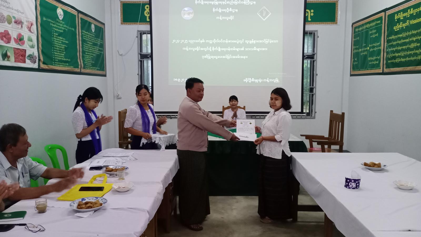 အဆိုပါအခမ်းအနားတွင် စိုက်ပျိုးရေးဦးစီးဌာန ခရိုင်ဦးစီးမှူး ဒေါ်လှကြိုင်က ဂုဏ်ပြုဆုချီးမြှင့်ပေးအပ်ခြင်းနှင့်ပတ်သက်၍ ရှင်းလင်းပြောကြားပြီး တာဝန်ရှိသူများက ထူးချွန်စွာအောင်မြင်ကြသော ကျောင်းသား၊ ကျောင်းသူများအား ဆုများအသီးသီးချီးမြှင့်ပေးအပ်သည်။ ထို့နောက် ဆုရကျောင်းသား၊ ကျောင်းသူများကိုယ်စား နှစ်ဘာသာဂုဏ်ထူးရှင် မဆုသံဇင်နွယ်က ကျေးဇူးတင်စကား ပြန်လည်ပြောကြားသည်။