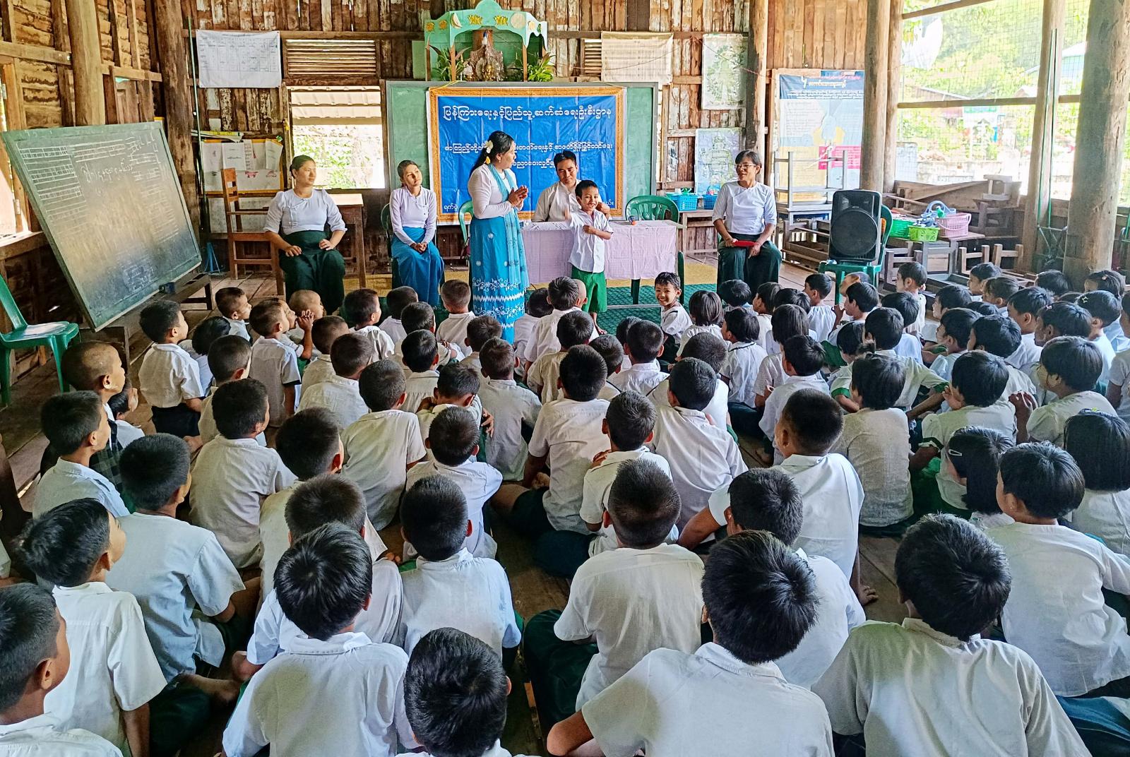 ဧရာဝတီတိုင်းဒေသကြီး၊ မြန်အောင်ခရိုင်၊ ကြံခင်းမြို့၊ အ.မ.က (မဲကုန်း) ကျောင်း၌ စာဖတ်ရှိန်မြှင့် တင်ရေး အသိပညာပေးဟောပြောပွဲကို ပြန်ကြားရေးနှင့်ပြည်သူ့ဆက်ဆံရေးဦးစီးဌာနနှင့် အခြေခံပညာဦးစီးဌာနတို့ပူးပေါင်း၍ ယမန်နေ့မွန်းလွဲပိုင်းက အဆိုပါကျောင်းရှိခန်းမ၌ပြုလုပ်ခဲ့ရာ ဆရာ၊ ဆရာမများနှင့် ကျောင်းသား ကျောင်းသူ ၅၀ ဦးတက်ရောက်ခဲ့သည်။
