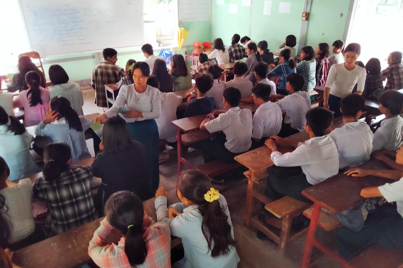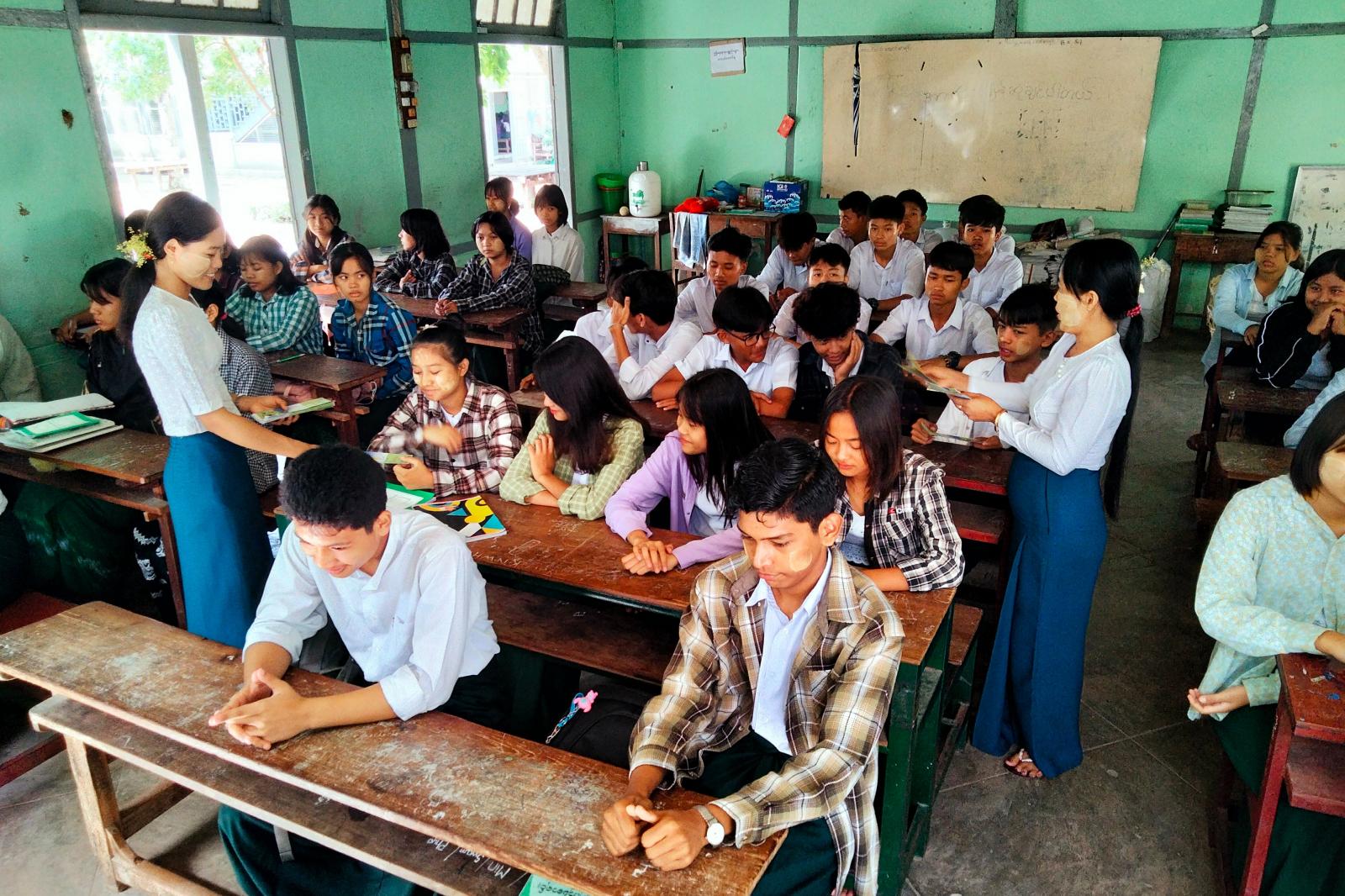 မကွေးတိုင်းဒေသကြီး နတ်မောက်မြို့နယ် ပြန်ကြားရေးနှင့်ပြည်သူ့ဆက်ဆံရေးဦးစီးဌာနက ကလေးအလုပ် သမားပပျောက်ရေးဆိုင်ရာ အသိပညာပေးလက်ကမ်းစာစောင်များကို ယမန်နေ့နံနက် ၁၀ နာရီခွဲအချိန်က အမှတ် (၁) အခြေခံပညာအထက်တန်းကျောင်းရှိ ကျောင်းသား၊ ကျောင်းသူများအား သွားရောက်ဖြန့်ဝေပေးခဲ့သည်။