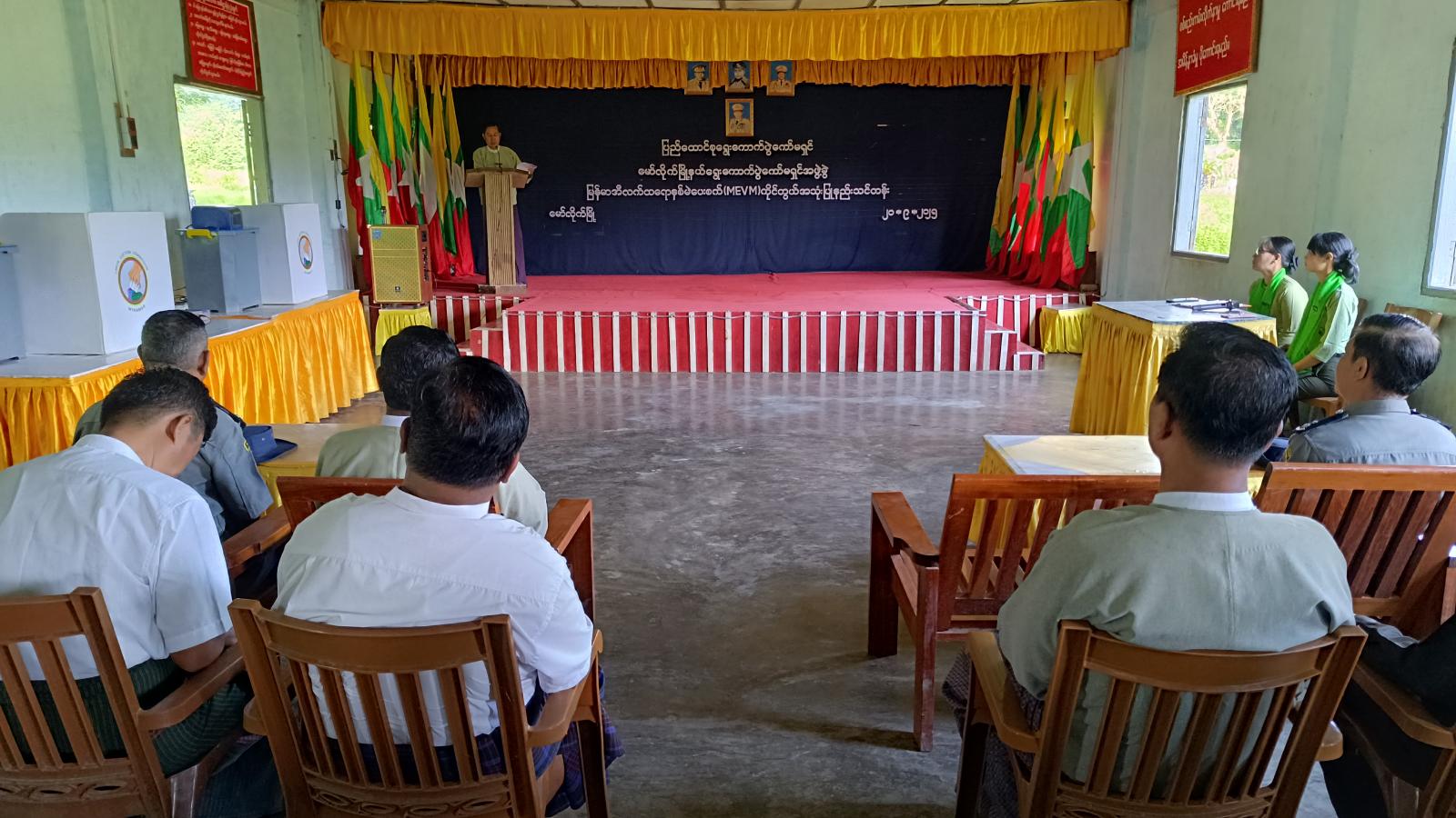 စစ်ကိုင်းတိုင်းဒေသကြီး၊ မော်လိုက်ခရိုင် မော်လိုက်မြို့၌ ပါတီစုံဒီမိုကရေစီအထွေထွေရွေးကောက်ပွဲ ကျင်းပပြုလုပ်ရာ၌ မဲရုံများတွင် အသုံးပြုမည့် MEVM စက်များအား မဲရုံအဖွဲ့ဝင်များ ကျွမ်းကျင်ပိုင်နိုင်စွာ ကိုင်တွယ်အသုံးပြု ဆောင်ရွက်နိုင်စေရန် ရည်ရွယ်၍ မဲပေးစက်ကိုင်တွယ်အသုံးပြုနည်း ဆင့်ပွားသင်တန်းကို ယနေ့ နံနက် ၉ နာရီ အချိန်က အမှတ် (၃၆၄) ခြေမြန်တပ်ရင်း အောင်ဇေယျခန်းမတွင် ကျင်းပပြုလုပ်ခဲ့ရာ ခရိုင်စီမံခန့်ခွဲရေးနှင့် အုပ်ချုပ်ရေးကော်မတီဥက္ကဋ္ဌနှင့် အဖွဲ့ဝင်များ၊ မြို့နယ်စီမံခန့်ခွဲရေးနှင့် အုပ်ချုပ်ရေးကော်မတီဥက္ကဋ္ဌနှင့် အဖွဲ့ဝင်များ၊ ခရိုင်ကော်မရှင်အဖွဲ့ခွဲဥက္ကဋ္ဌနှင့် အဖွဲ့ဝင်များနှင့် သင်တန်းသား၊ သင်တန်းသူများ တက်ရောက်ခဲ့ကြကြောင်း သိရသည်။