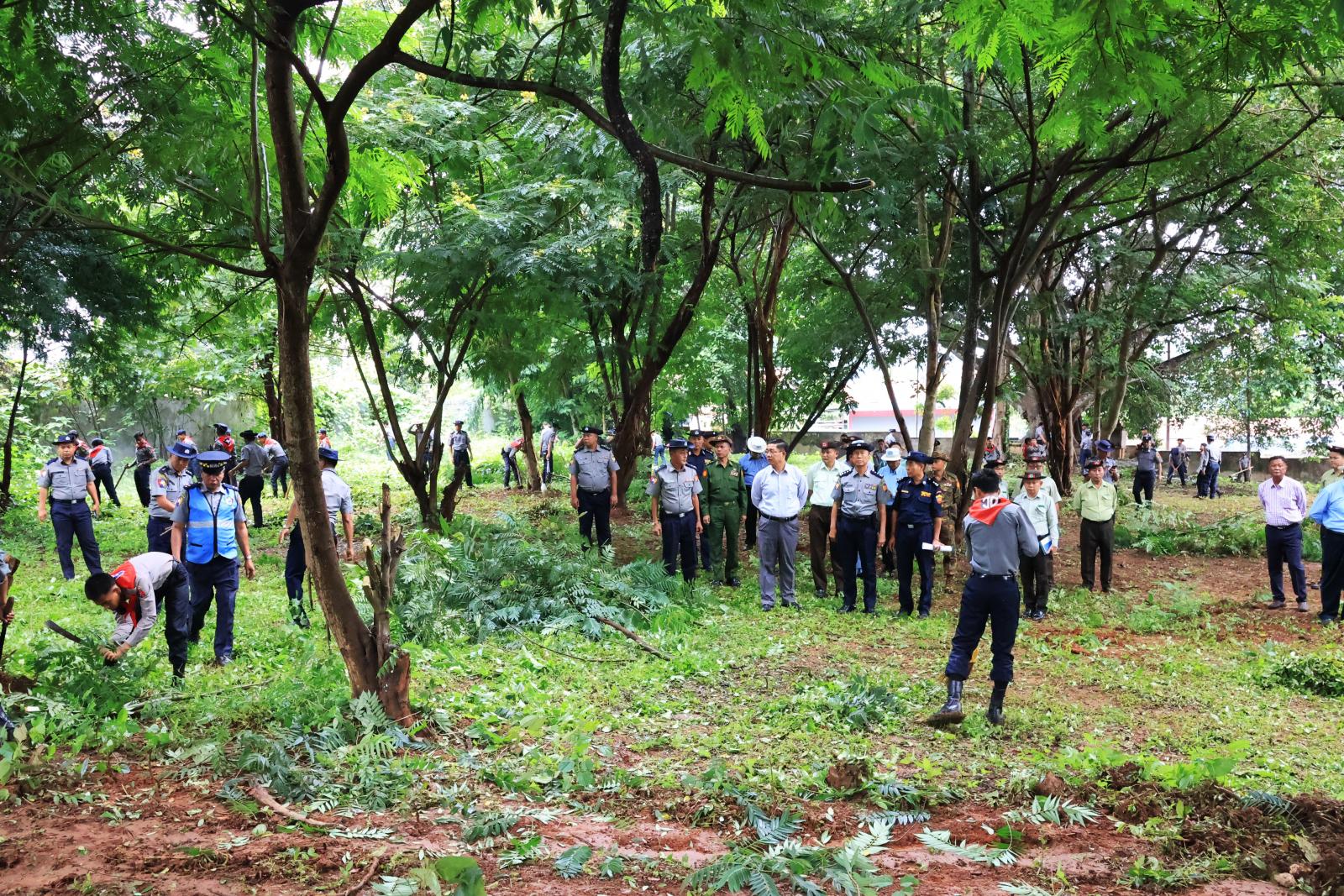 ပြည်နယ်ဝန်ကြီးချုပ်နှင့် တာဝန်ရှိသူများသည် (၆၁)နှစ်မြောက် မြန်မာနိုင်ငံရဲတပ်ဖွဲ့နေ့ကို ကြိုဆိုဂုဏ်ပြုသောအားဖြင့် ပြည်နယ်ရဲတပ်ဖွဲ့ဝင်များက ကျောင်းထိုင်ဘုန်းကြီးသင်တန်းကျောင်းတိုက် ပရဝဏ်အတွင်း ကုသိုလ်ပြု စုပေါင်းသန့်ရှင်းရေး ဆောင်ရွက်ပေးနေမှုနှင့် နယ်မြေခံတပ်ရင်း တပ်ဖွဲ့များ၊ မီးသတ်တပ်ဖွဲ့ဝင်များ၊ ဌာနဆိုင်ရာဝန်ထမ်းများနှင့် ပြည်သူများက ပါဝင်ကုသိုလ်ပြု သန့်ရှင်းရေးဆောင်ရွက်ပေးနေမှုကို လှည့်လည်ကြည့်ရှုအားပေးပြီး ရင်းရင်းနှီးနှီး နှုတ်ဆက်စကားပြောကြားသည်။