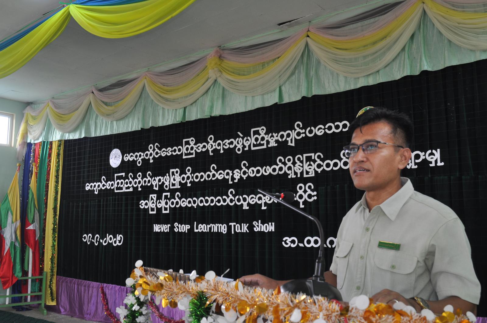 ဆက်လက်ပြီး မြို့နယ်စီမံခန့်ခွဲရေးနှင့်အုပ်ချုပ်ရေးကော်မတီဥက္ကဋ္ဌ ဦးကျော်ငြိမ်းထွန်းက အဖွင့်အမှာစကားပြောကြားပြီး မြို့နယ်ပြန်ကြားရေးနှင့်ပြည်သူ့ဆက်ဆံရေးဦးစီးဌာန ဦးစီးအရာရှိ ဦးနိုင်လင်းက ကျောင်းစာကြည့်တိုက်များဖွံ့ဖြိုးတိုးတက်ရေးနှင့် စာဖတ်ရှိန် မြှင့်တင်ရေးလှုပ်ရှားမှုအခမ်းအနား ကျင်းပပြုလုပ်ရသည့်ရည်ရွယ်ချက်အား ရှင်းလင်းပြောကြားခဲ့သည်။
