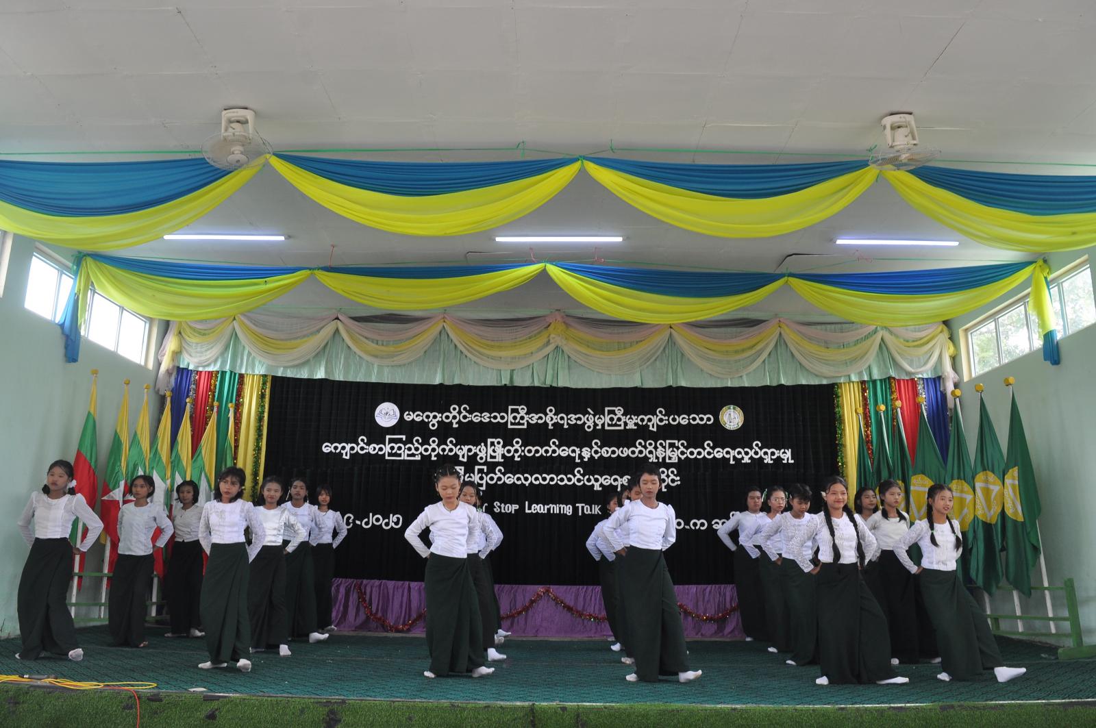 ရှေးဦးစွာဆင်ပေါင်ဝဲမြို့နယ် အခြေခံပညာအထက်တန်းကျောင်းမှ ကျောင်းသား ကျောင်းသူများက အလှဆုံးပန်းများပွင့်ကြပြီ တေးသီချင်းဖြင့် သီဆိုဖျော်ဖြေ၍ အခမ်းအနားကိုစတင်ဖွင့်လှစ်ခဲ့သည်။