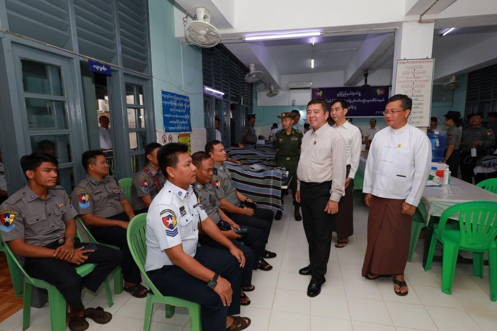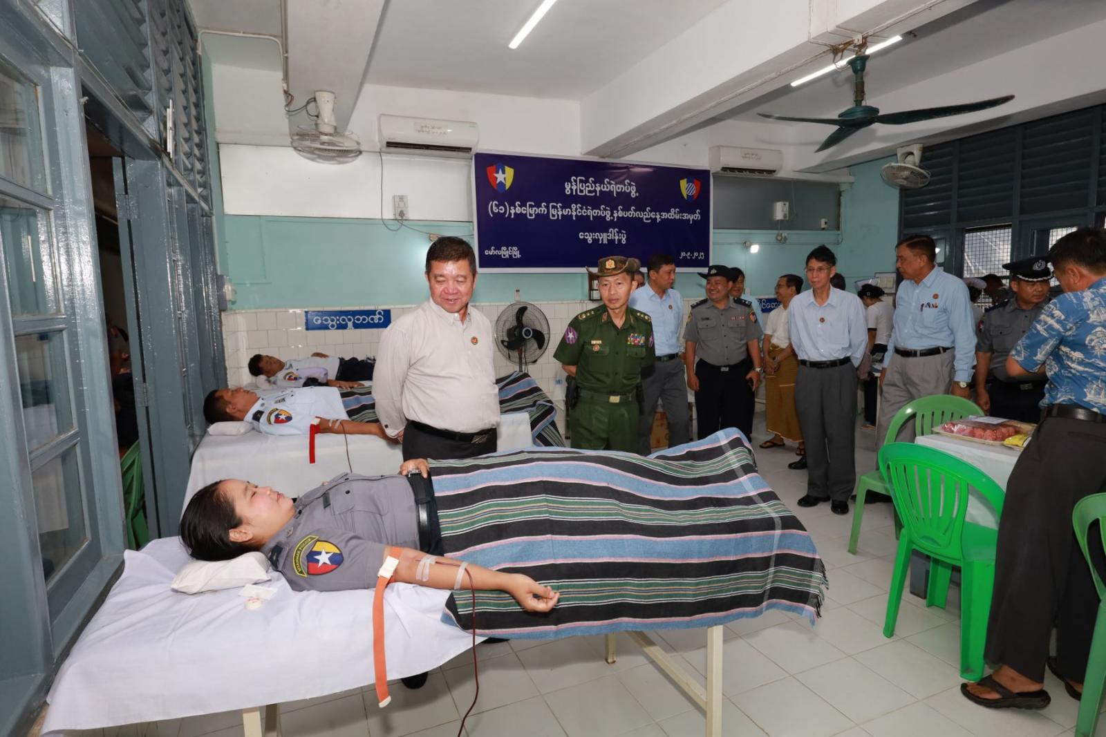 ဦးစွာ ခရိုင်ရဲတပ်ဖွဲ့မှူးဒုရဲမှူးကြီးမြင့်ထွန်းမှ ကြီးကြပ်ကွပ်ကဲ၍ ပြည်နယ်၊ ခရိုင်၊ မြို့နယ် ရဲတပ်ဖွဲ့ဝင်များမှ အထွေထွေရောဂါကုပြည်သူ့ ဆေးရုံကြီးရှိ ဆရာဝန်ကြီးများ၊ သူနာပြုဆရာ၊ ဆရာမများ၊ ကျန်းမာရေးဝန်ထမ်းများမှ သွေးလှူဒါန်းကြသူများအား ကိုယ်အလေးချိန်နှင့် သွေးပေါင်ချိန် တိုင်းတာခြင်း၊သွေးအမျိုး အစားခွဲခြားခြင်းနှင့် လိုအပ်သည့် ကျန်းမာရေး စစ်ဆေးခြင်းများ ဆောင်ရွက်ပေးခြင်းနှင့် စုပေါင်းသွေးလှူဒါန်းနေမှုကို ပြည်နယ်ဝန်ကြီး ချုပ်နှင့် ပြည်နယ်အစိုးရအဖွဲ့ဝင် ဝန်ကြီးများက ကြည့်ရှုအားပေးခဲ့ကြသည်။