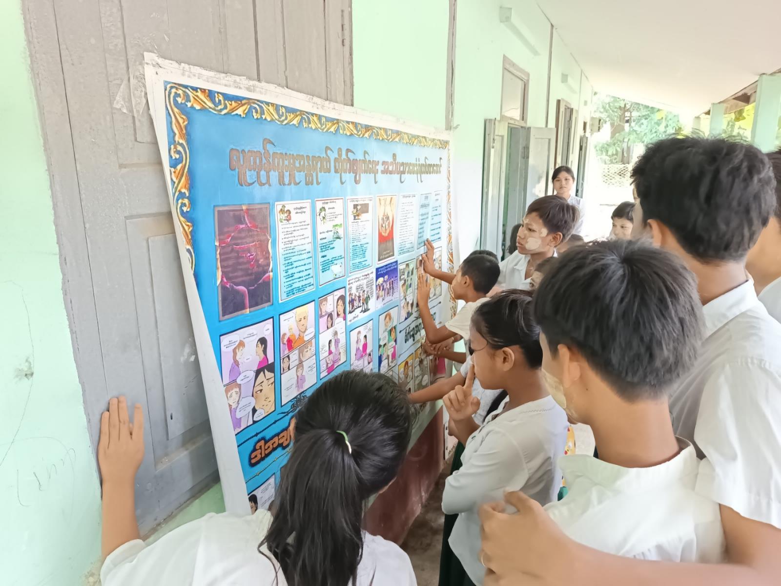 ထို့နောက် အဆိုပါကျောင်းခန်းတွင် မြို့နယ်ပြန်ကြားရေးနှင့်ပြည်သူ့ဆက်ဆံရေးဦးစီးဌာနမှ ပြသထားသည့် မူးယစ်ဆေးဝါးအန္တရာယ် အသိပညာပေးနှင့် လူကုန်ကူးမှုတားဆီးကာကွယ်ရေး အသိပညာပေးနံရံကပ်စာစောင်များအား ကျောင်းသား/သူလေးများက စိတ်ပါဝင်စားစွာ ဖတ်ရှုလေ့လာခဲ့ကြကြောင်း သိရသည်။