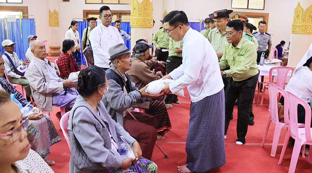 ထို့နောက် ပြည်နယ်ဝန်ကြီးချုပ်က နိုင်ငံ့ဝန်ထမ်း(အငြိမ်းစား)များသည် နိုင်ငံ့တာဝန်များကို ကျရာကဏ္ဍများမှ ကျေပွန်စွာထမ်းဆောင်ခဲ့ကြသူများဖြစ်ကြောင်း၊ ပြည်နယ်အစိုးရအဖွဲ့အနေဖြင့် နိုင်ငံ့ဝန်ထမ်း(အငြိမ်းစား)များ နေထိုင်စားသောက်မှု အဆင်ပြေစေရန်အတွက် အခါအားလျော်စွာ ကူညီဆောင်ရွက်ပေးလျက်ရှိပါကြောင်း ပြောကြားပြီး ပြည်နယ်ဝန်ကြီးချုပ်နှင့်တာဝန်ရှိသူများက နိုင်ငံ့ဝန်ထမ်း (အငြိမ်းစား)များအား ဆန်၊ ဆီ၊ ကြက်ဥနှင့် နေ့လယ်စာများ ပေးအပ်ခဲ့ကြသည်။