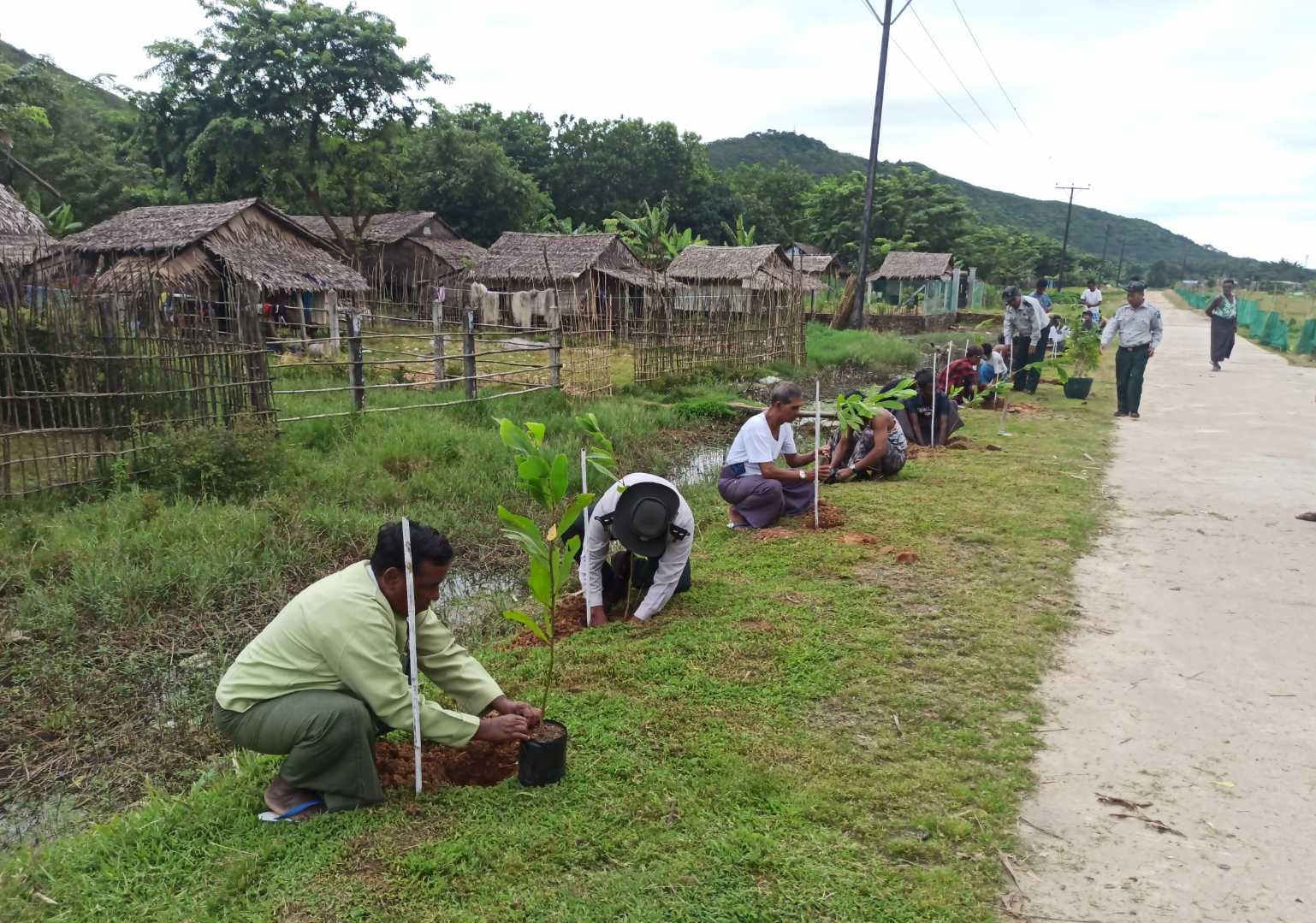 ထိုသို့စိုက်ပျိုးရာတွင် မန်ဂျန်ရှား (၁၀၀) ပင်၊ စိန်ပန်း (၁၀၀) ပင်၊ စုစုပေါင်းပျိုးပင် (၂၀၀)အား စိုက်ပျိုးခဲ့ကြသည်။ သစ်တောဦးစီးဌာနအနေဖြင့် သစ်တောသစ်ပင်များ စိုက်ပျိုးခြင်းဖြင့် ရေရှားပါးခြင်းအပြင် သဘာဝဘေးအန္တရာယ်အမျိုးမျိုးမှ ကာကွယ်နိုင်ရန် ရည်ရွယ်၍ ကျေးရွာချင်းဆက်လမ်းများအား စိုက်ပျိုးခဲ့ကြောင်း သိရသည်။