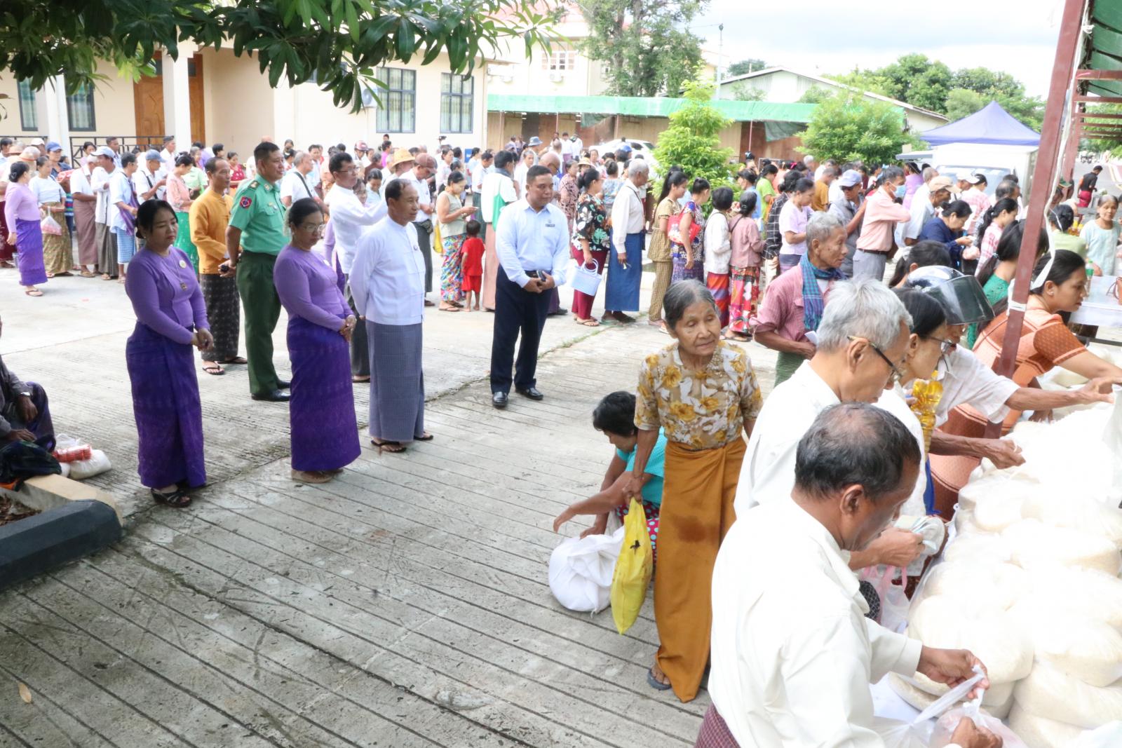 ဆက်လက်၍ တိုင်းဒေသကြီး ဝန်ကြီးချုပ်နှင့် တာဝန်ရှိသူများသည် အဆိုပါခန်းမဝန်းအတွင်း၌ တိုင်းဒေသကြီး စားသုံးသူရေးရာဦးစီးဌာန၊ စည်ပင်သာယာရေးအဖွဲ့နှင့် မြို့နယ်အထွေထွေအုပ်ချုပ်ရေးဦးစီးဌာနတို့မှ အငြိမ်းစားဝန်ထမ်းများအား အခြေခံစားသောက်ကုန်များဖြစ်သည့် ဆန်၊ စားသုံးဆီနှင့် ဟင်းသီးဟင်းရွက်များအား ဈေးနှုန်းသက်သာစွာဖြင့် ရောင်းချပေးနေမှုများအား လိုက်လံကြည့်ရှုခဲ့ကြသည်။