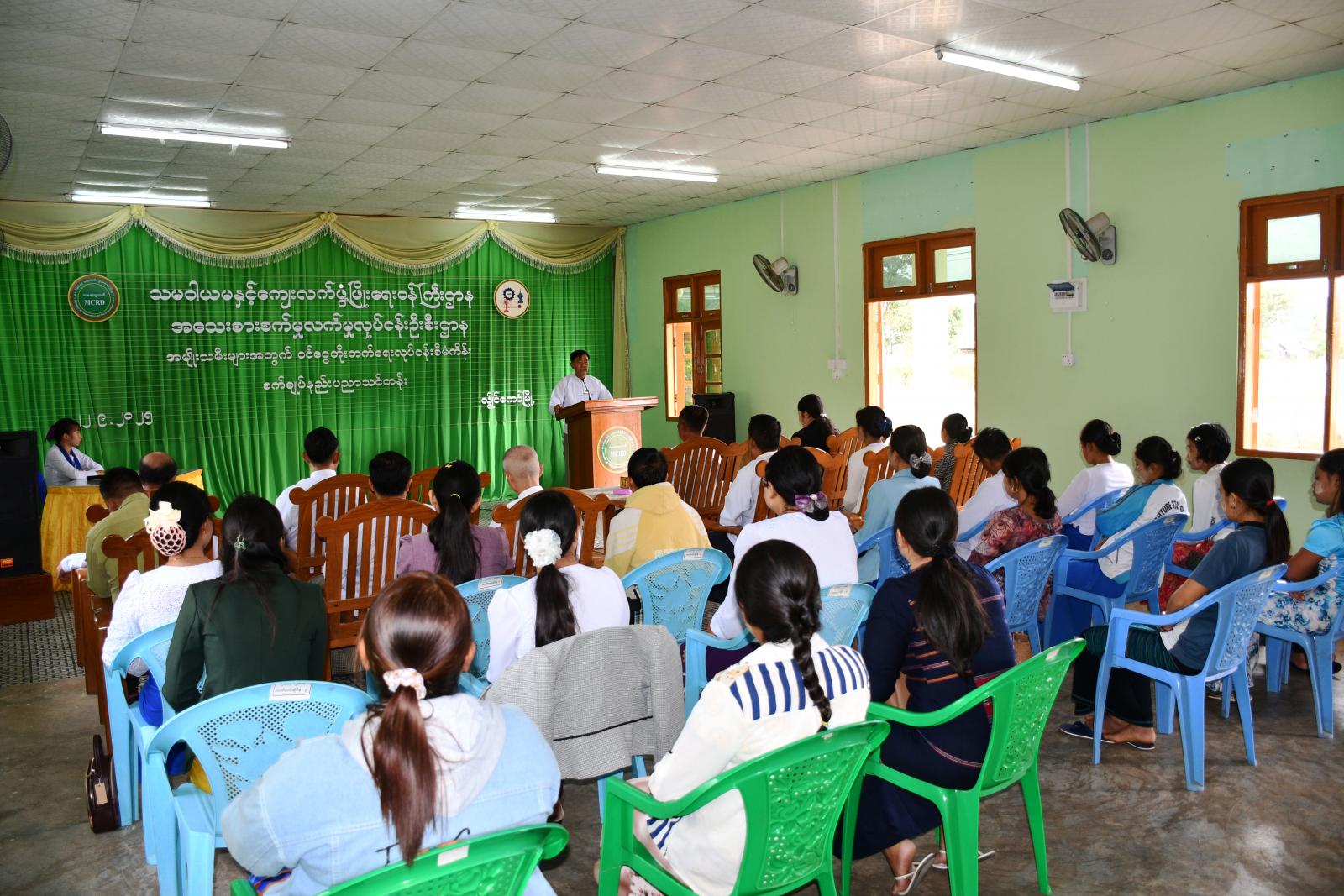 အခမ်းအနားတွင် ကယားပြည်နယ်အစိုးရအဖွဲ့ လမ်းပန်းဆက်သွယ်ရေးဝန်ကြီး ဦးအောင်မျိုးသန်းက ပြည်နယ်အစိုးရရန်ပုံငွေဖြင့် အမျိုးသမီးများ ဝင်ငွေတိုးတက်ရေးအတွက် အဓိကဦးစားပေးအသက်မွေးသင်တန်းများကို ဖွင့်လှစ်ပေးခြင်းဖြစ်ပြီး လုပ်ငန်းတည်ထောင်နိုင်ရေးအတွက်လည်း ကူညီဆောင်ရွက်ပေးလျက်ရှိပါကြောင်း.၊ သင်တန်းသားများအနေဖြင့် နည်းပြဆရာများ၏ သင်ကြားပို့ချမှုများကို ဂရုစိုက်မှတ်သား၍ ထူးချွန်သည့် သင်တန်းသားများမှတစ်ဆင့် ဈေးကွက်ဝင် ခေတ်မီအမျိုးသမီး၊ အမျိုးသားအဝတ်အထည်များ တီထွင်ဖန်တီးချုပ်လုပ်နိုင်သည့် လုပ်ငန်းရှင်များဖြစ်လာသည်အထိ ကြိုးစားကြစေလိုကြောင်း ပြောကြားပြီး တက်ရောက်လာသည့် သင်တန်းသား သင်တန်းသူများအား ရင်းရင်းနှီးနှီး နှုတ်ဆက်စကားပြောကြားသည်။