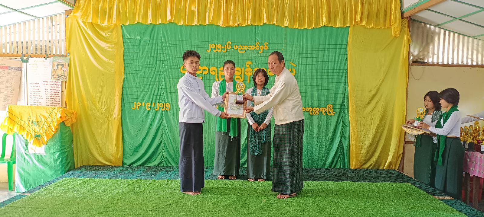အဆိုပါ အခြေခံပညာအထက်တန်းကျောင်း ၂၀၂၅ ခုနှစ် ပညာရည်ချွန်ဆုများ ချီးမြှင့်ရာတွင် ပါဝင်ပေးကြသော မြို့နယ်စီမံအုပ်ချုပ်ရေးအဖွဲ့၊ ကျောင်းအကျိုးတော်ဆောင်များ၊ အခြေခံပညာဦးစီးဌာန တာဝန်ရှိသူများ ဆရာ၊ ဆရာမများအား ကျောင်းအုပ်ဆရာကြီးက ကျေးဇူးတင်စကားပြောကြား၍ ၂၀၂၅ ခုနှစ် ပညာရည်ချွန်ဆုချီးမြှင့်ခြင်း အခမ်းအနားကျင်းပရာတွင် ကျောင်းသား/သူလေးများက တေးသီချင်း၊ အက အလှတို့ဖြင့် ဖျော်ဖြေတင်ဆက်ကြကြောင်း သိရသည်။