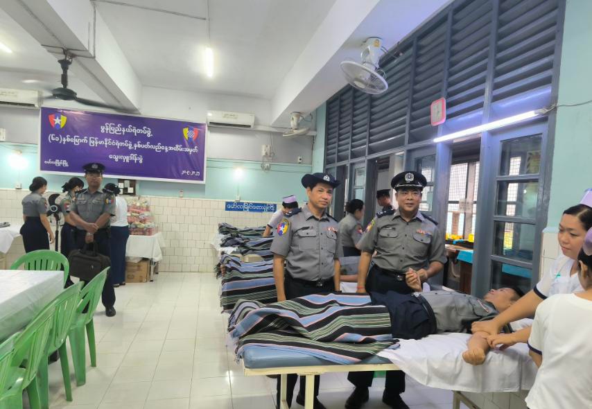 ဦးစွာ သတင်းရဲတပ်ဖွဲ့ အမှတ်(၁၁)တပ်ဖွဲ့ခွဲမှူး ဒုတိယရဲမှူးကြီး ခင်မောင်လှဦးဆောင်၍ ရဲတပ်ဖွဲ့ဝင် များမှ အထွေထွေရောဂါကုပြည်သူ့ဆေးရုံကြီးရှိ ဆရာဝန်ကြီးများ၊ သူနာပြုဆရာ၊ ဆရာမများ၊ ကျန်းမာရေးဝန်ထမ်းများမှ သွေးလှူဒါန်းကြသူများအား ကိုယ်အလေးချိန်နှင့် သွေးပေါင်ချိန်တိုင်းတာခြင်း၊ သွေးအမျိုးအစားခွဲခြားခြင်းနှင့် လိုအပ်သည့် ကျန်းမာရေးစစ်ဆေးခြင်းများ ဆောင်ရွက်ခဲ့ကြကြောင်း သိရှိရသည်။