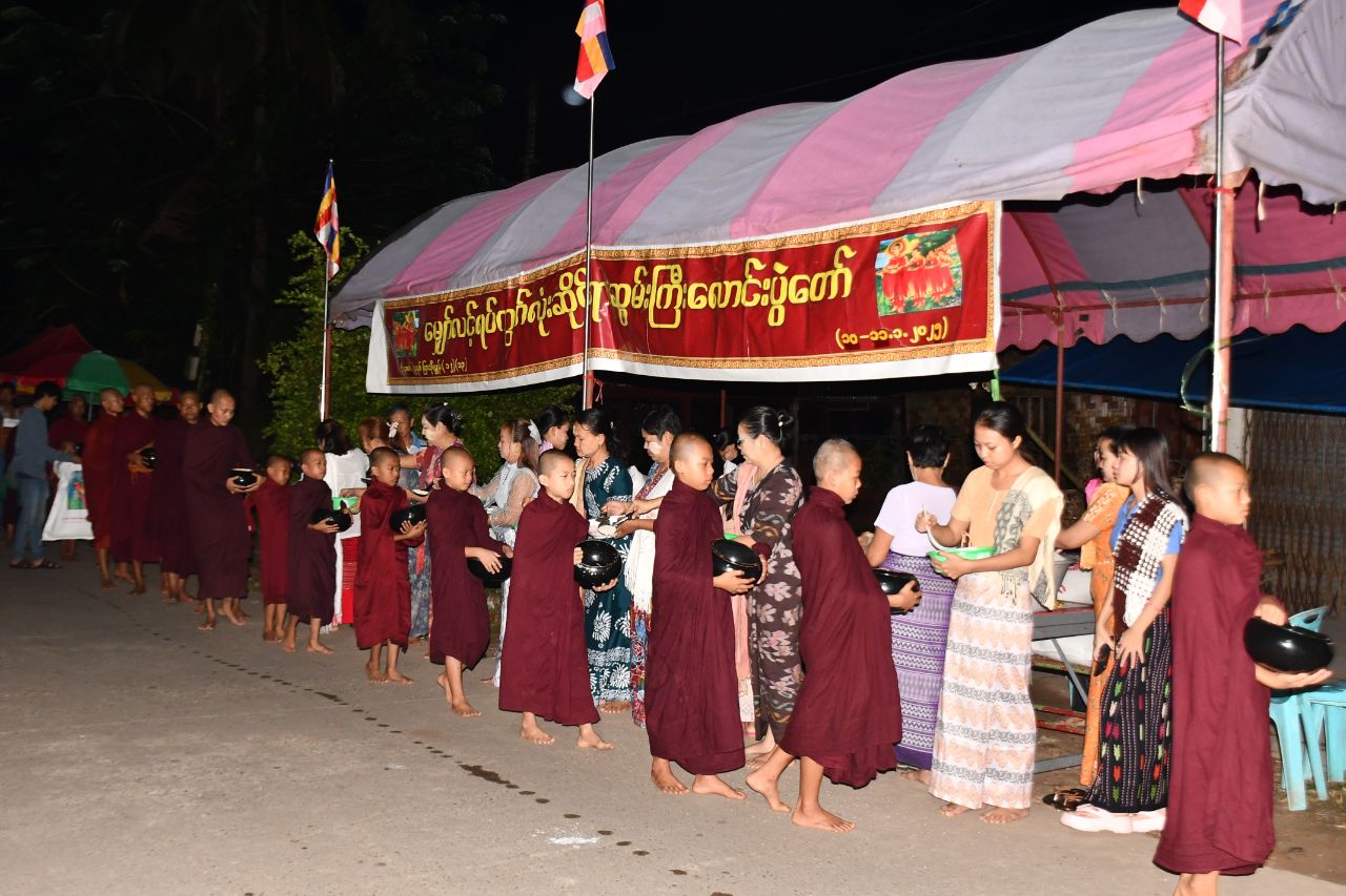 အဆိုပါ ဆွမ်းဆန်တော်လောင်းလှူပွဲကို မော်လမြိုင်မြို့၊ ဇေယျာသီရိရပ်ကွက် လောကမာရဇိန်(ငွေဘုံသာ) ဘုရားတည်နေရာမှစတင်၍ မြို့ပေါ်ရှိဘုန်းတော်ကြီးကျောင်းနှင့် သီလရှင်ကျောင်း(၄၁၃)ကျောင်းတို့မှ ဆရာတော်၊ သံဃာတော်၊ သာမဏေအပါး(၈၃၁၄)ကျော်၊ သီလရှင်အပါး(၁၅၁၅)ကျော် စုစုပေါင်းသံဃာတော်၊ သီလရှင်အပါး(၁၀၀၀၀)ခန့်တို့ကို ဆွမ်းဆန်တော်များ လှူဒါန်းလောင်းလှူပူဇော်ခဲ့ကြသည်။ မြို့လုံးကျွတ်ဆွမ်းဆန်တော်လောင်းလှူပွဲသို့ ကြွရောက်ချီးမြှင့်တော်မူသော ဆရာတော်၊ သံဃာတော်၊ သာမဏေ၊ သီလရှင်များသည် ဇေယျာသီရိရပ်ကွက်ရှိ လောကမာရဇိန် ငွေဘုံသာဆုတောင်းပြည့်စေတီမှ ဇေယျာ(၂)လမ်းအတိုင်း မြောက်ဘက်မှ အနောက်ဘက် မင်းလမ်းမတစ်လျှောက်၊ အတ္ထရံဟိုတယ်ကွေ့မှ အောက်လမ်းမကြီးအတိုင်း စစ်ကဲကုန်းရပ်ကွက်၊ သာယာကုန်းဝတ်တော်ကြီးအထိ ထိုမှတစ်ဆင့် ဗဟိုလမ်း၊ မောရဝတီပန်းခြံရှေ့အထိလည်းကောင်း (ပထမ)နေ့ ဆွမ်းဆန်တော် အလှူခံကြွရောက်ချီးမြှင့်ခဲ့ကြရာ ဌာနဆိုင်ရာများ၊ အသင်းအဖွဲ့များ၊ စေတနာရှင်ပြည်သူများက သဒ္ဒါတရားထက်သန်စွာဖြင့် ဆွမ်းဆန်တော်များကို လှူဒါန်းလောင်းလှူပူဇော်ခဲ့ကြပြီး ဆွမ်းဆန်တော်လောင်းလှူပွဲကို နှစ်ရက်တိုင်ကျင်းပပြုလုပ်ကြောင်း သိရှိရသည်။